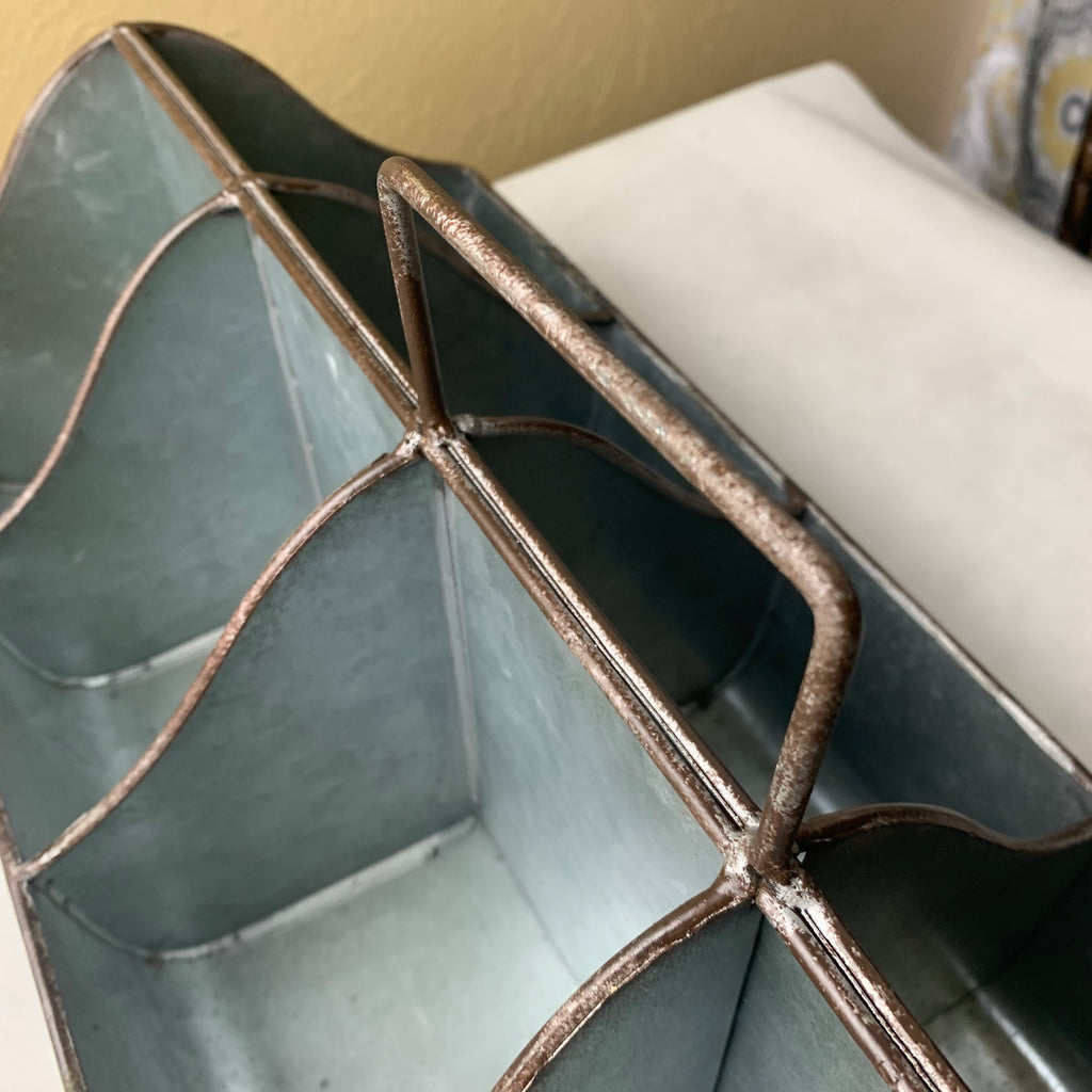 10 SECTION GALVANIZED CADDY FOR UTENSILS, TOOLS BUCKET WESTERN HOME DECOR