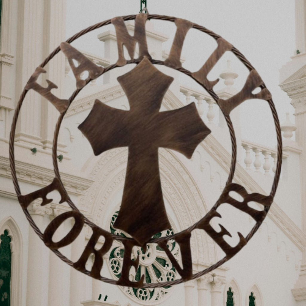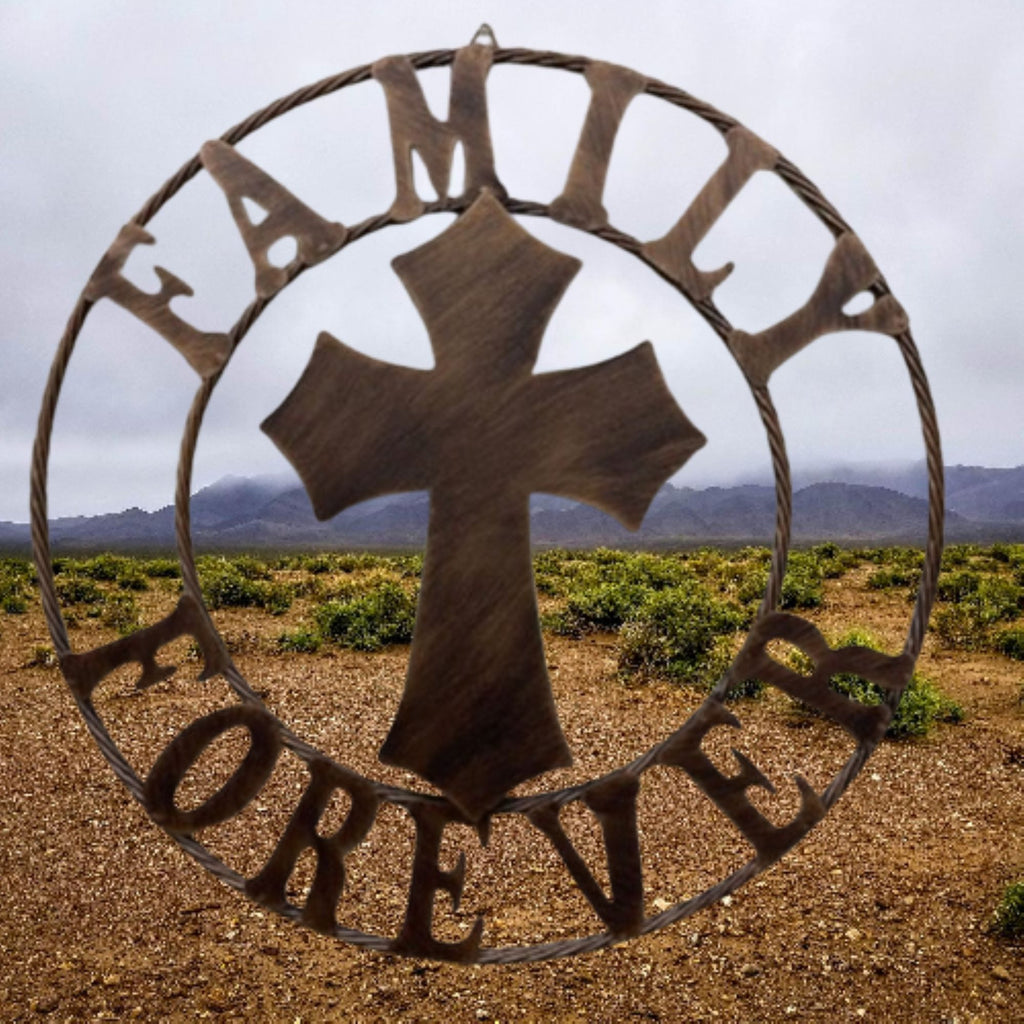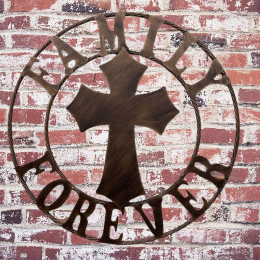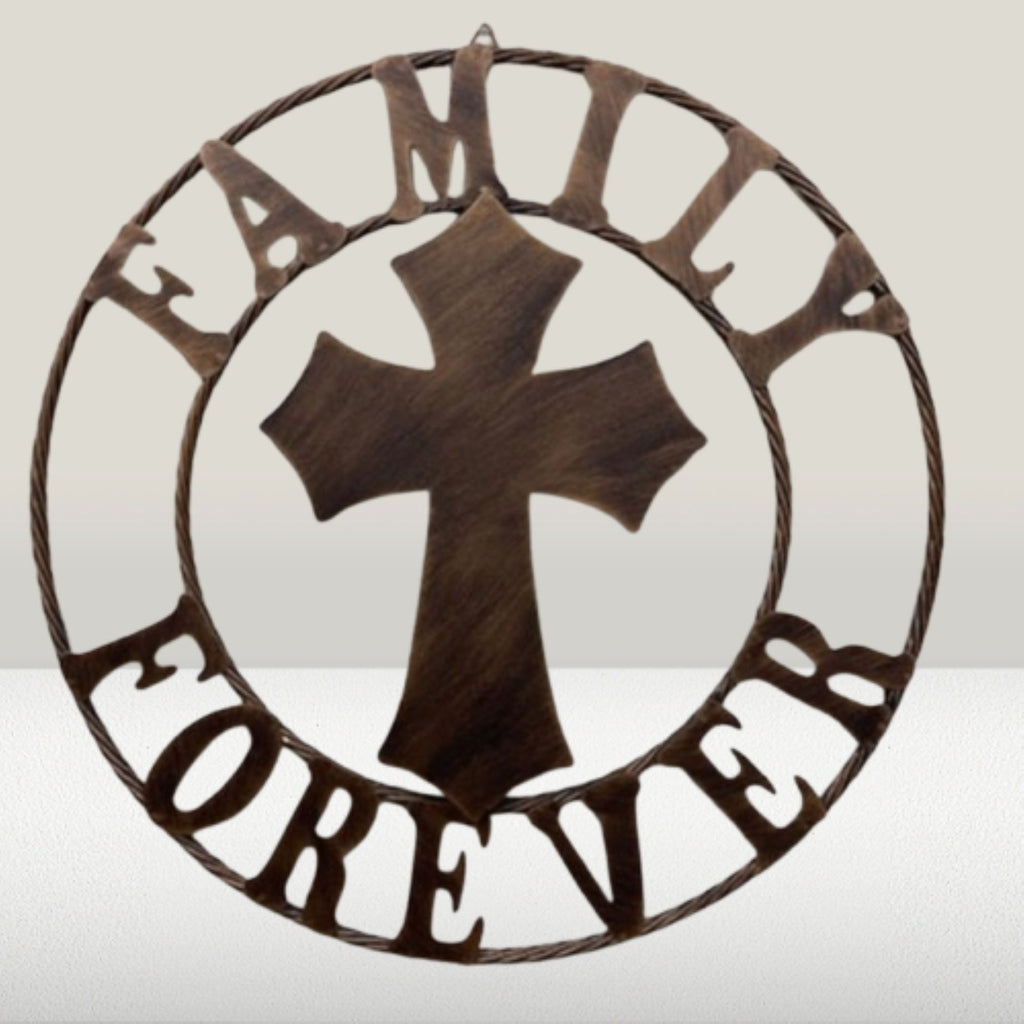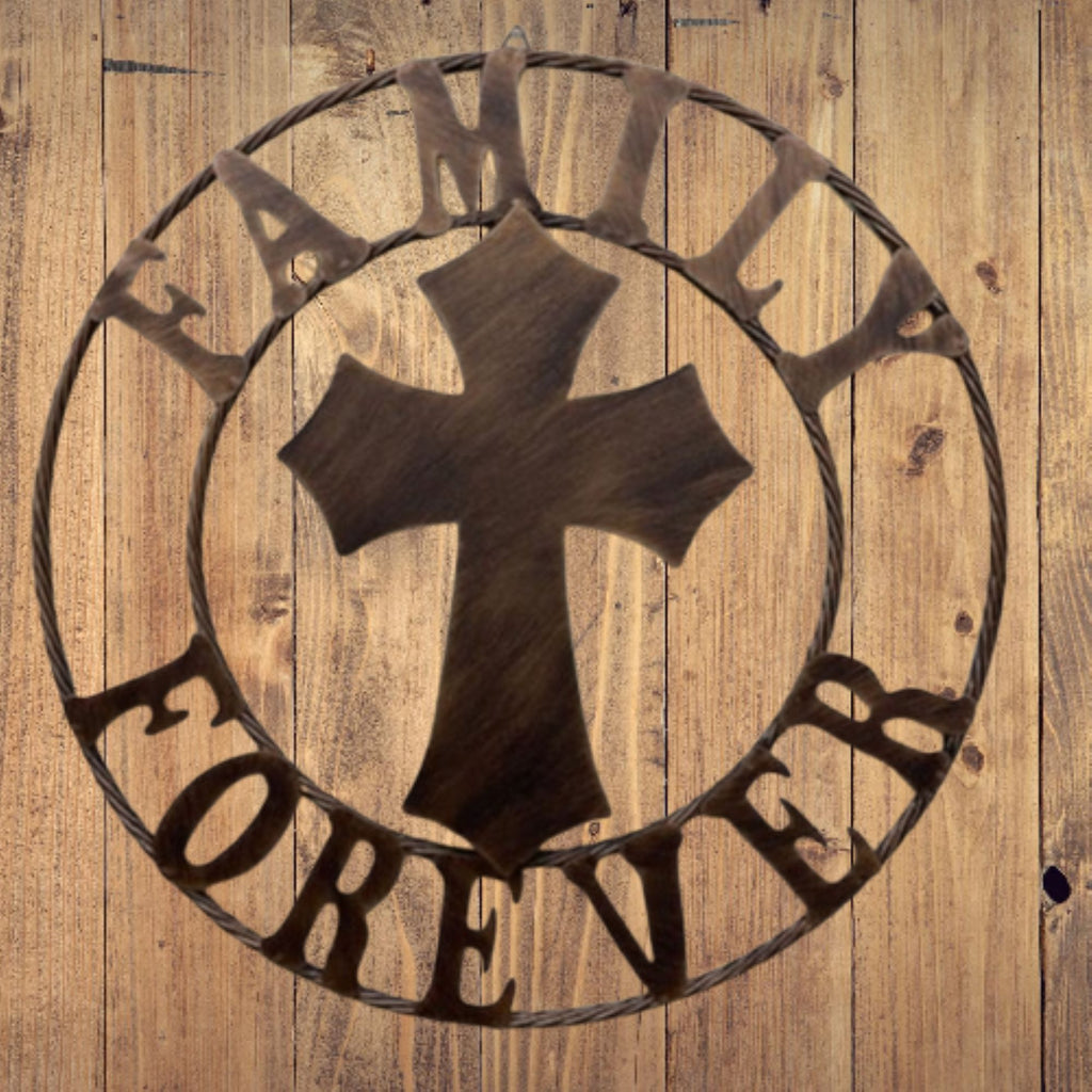 FAMILY FOREVER CROSS CUSTOM BARN METAL SIGN WESTERN HOME DECOR HANDMADE RUSTIC BRONZE HANDMADE NEW