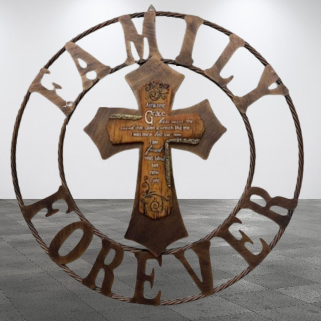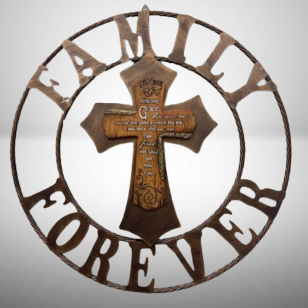 AMAZING GRACE FAMILY FOREVER CROSS CUSTOM BARN METAL SIGN WESTERN HOME DECOR HANDMADE RUSTIC BRONZE NEW