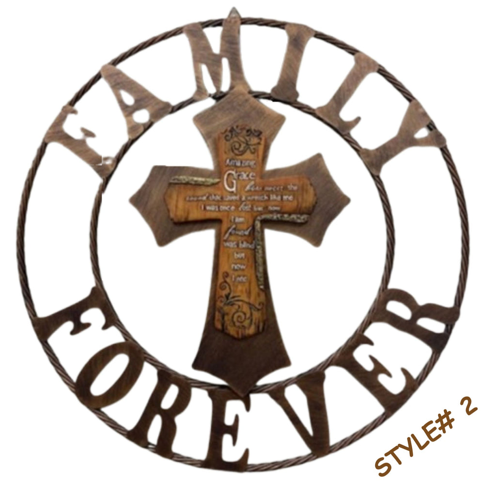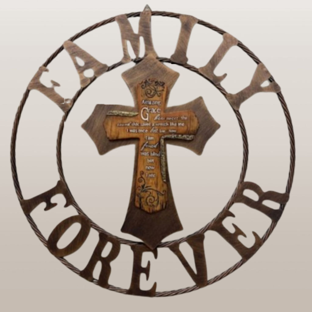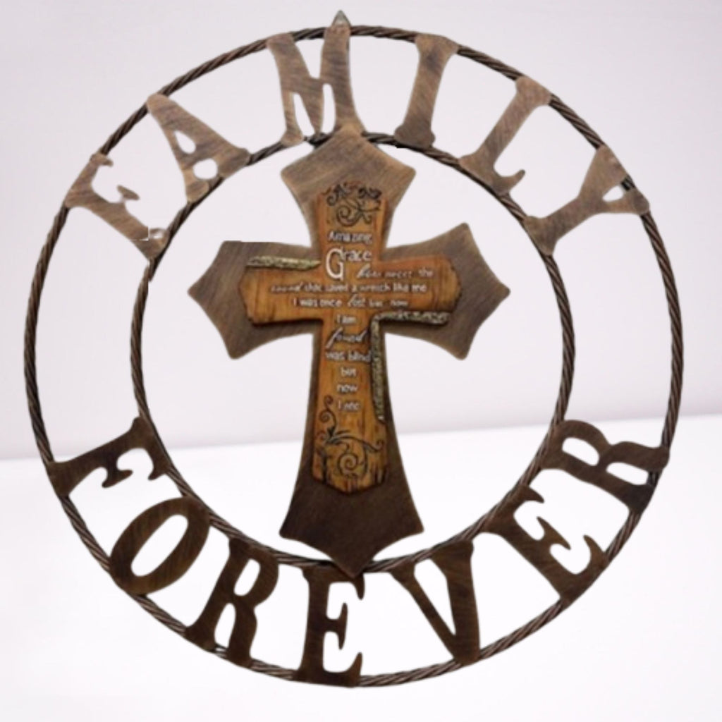 AMAZING GRACE FAMILY FOREVER CROSS 25" METAL BARN WALL CROSS WESTERN HOME DECOR HANDMADE NEW #EH13172