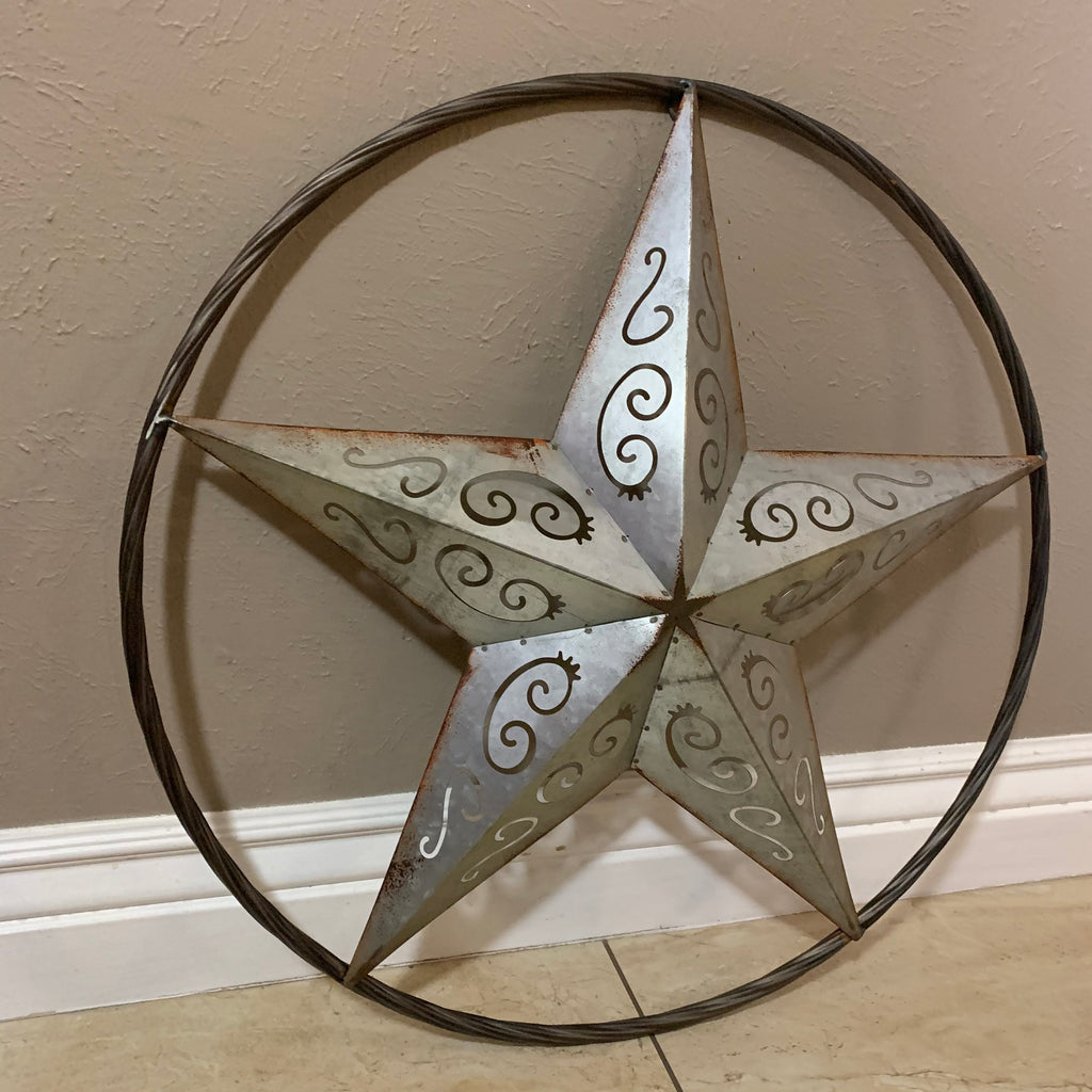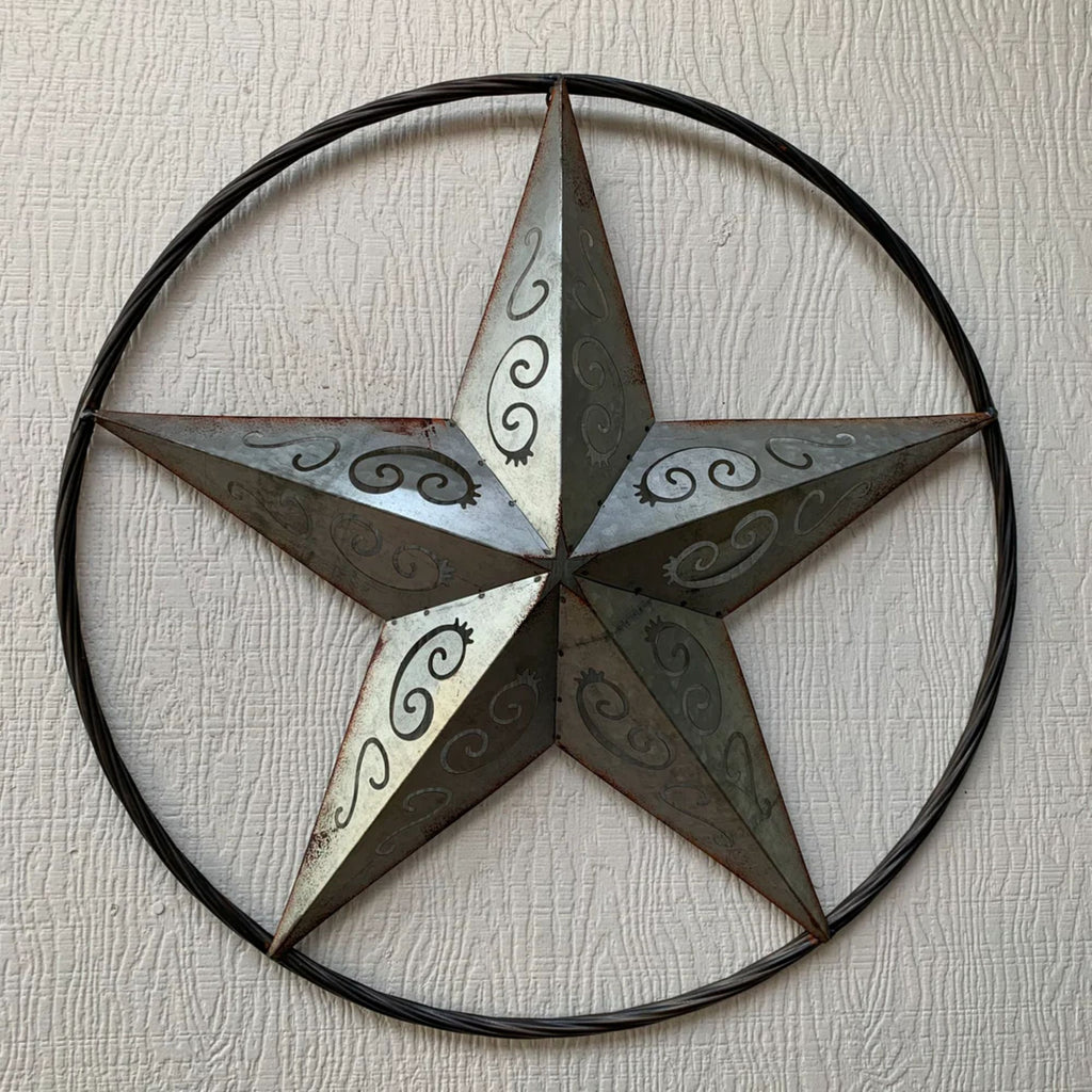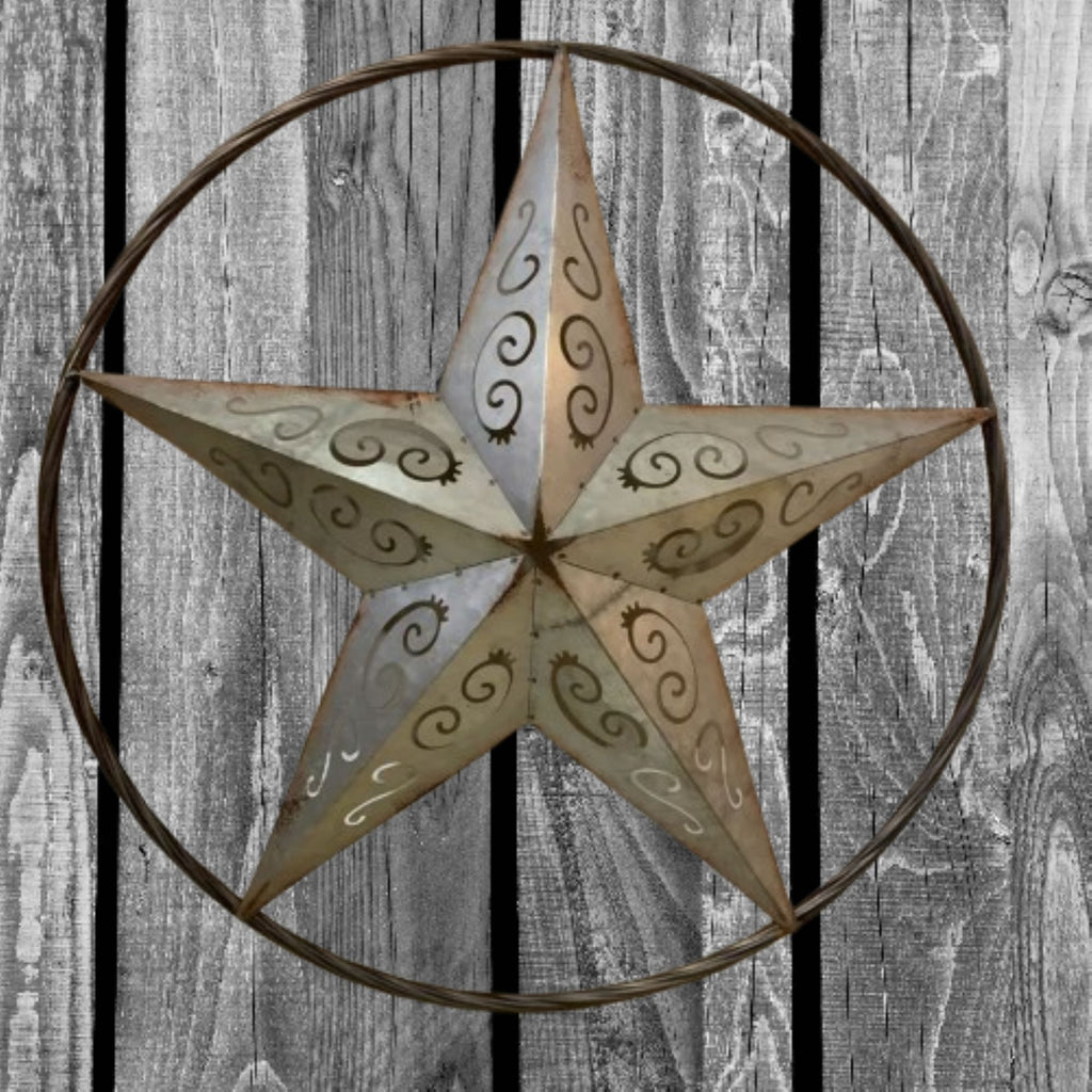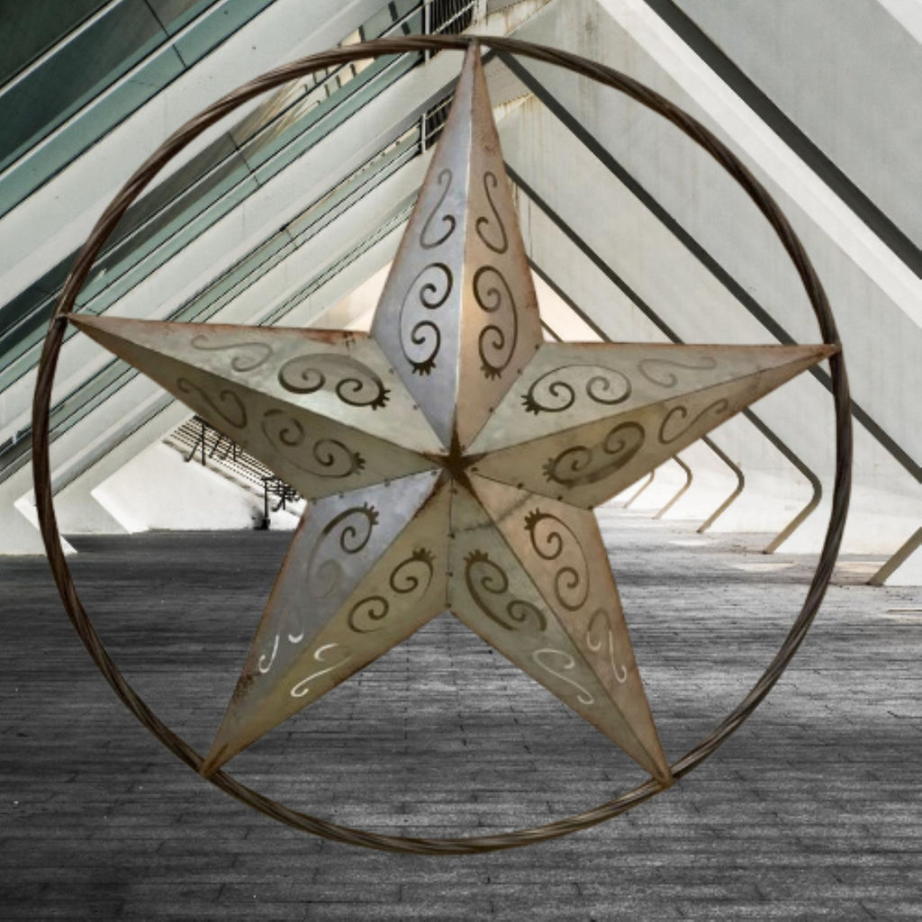 GALVANIZED CARVED SCROLL LASERCUT CUT OUT STYLE ART BARN METAL STAR WALL ART WESTERN HOME DECOR HANDMADE NEW