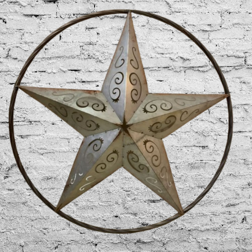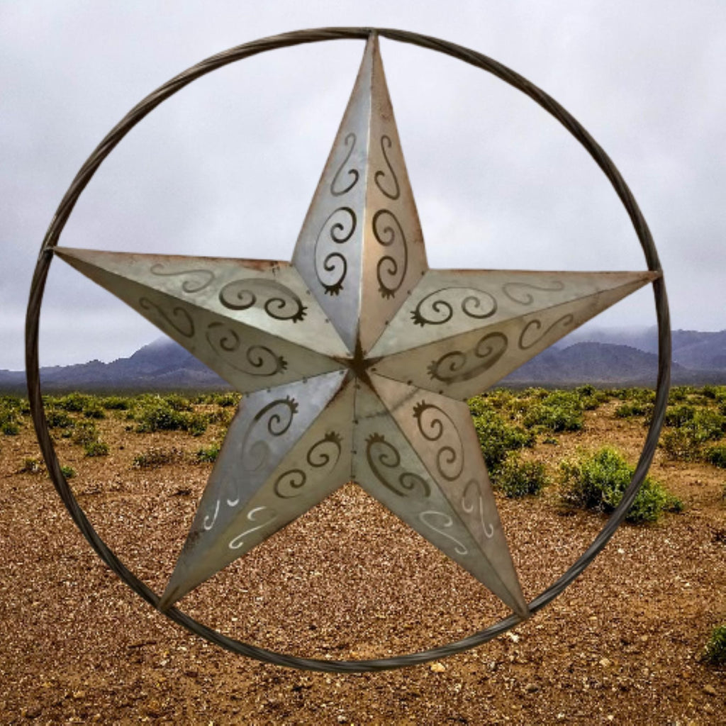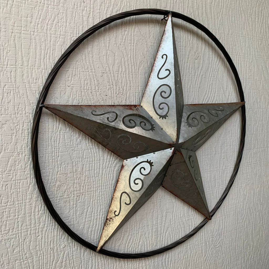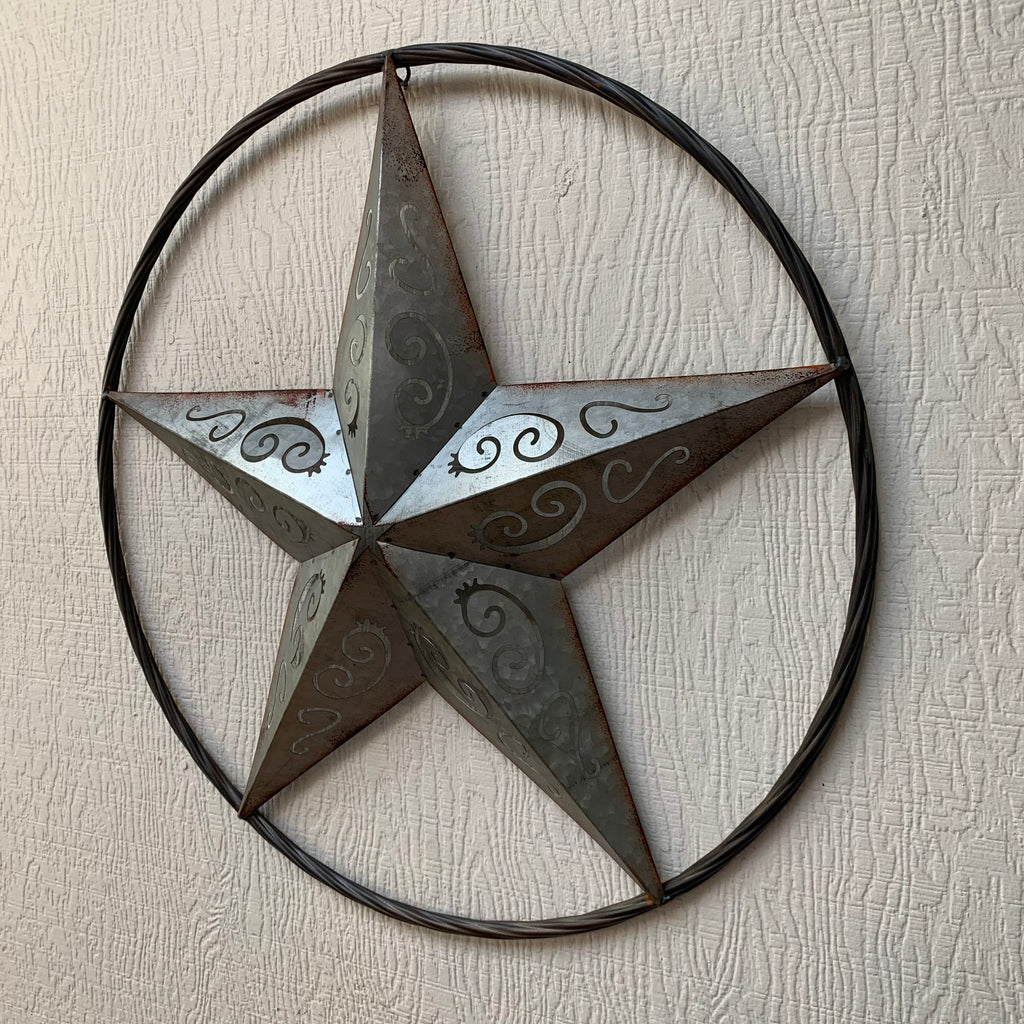GALVANIZED CARVED SCROLL LASERCUT CUT OUT STYLE ART BARN METAL STAR WALL ART WESTERN HOME DECOR HANDMADE NEW
