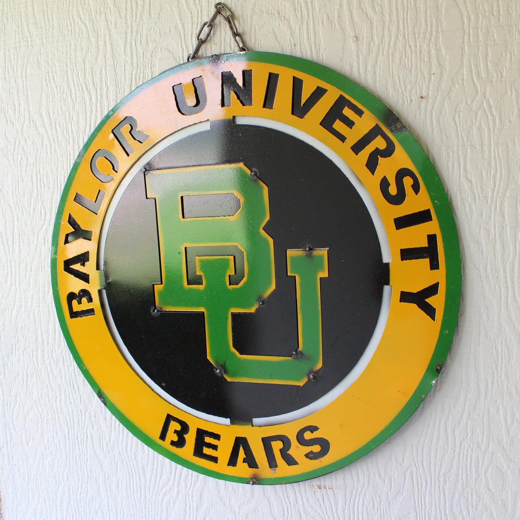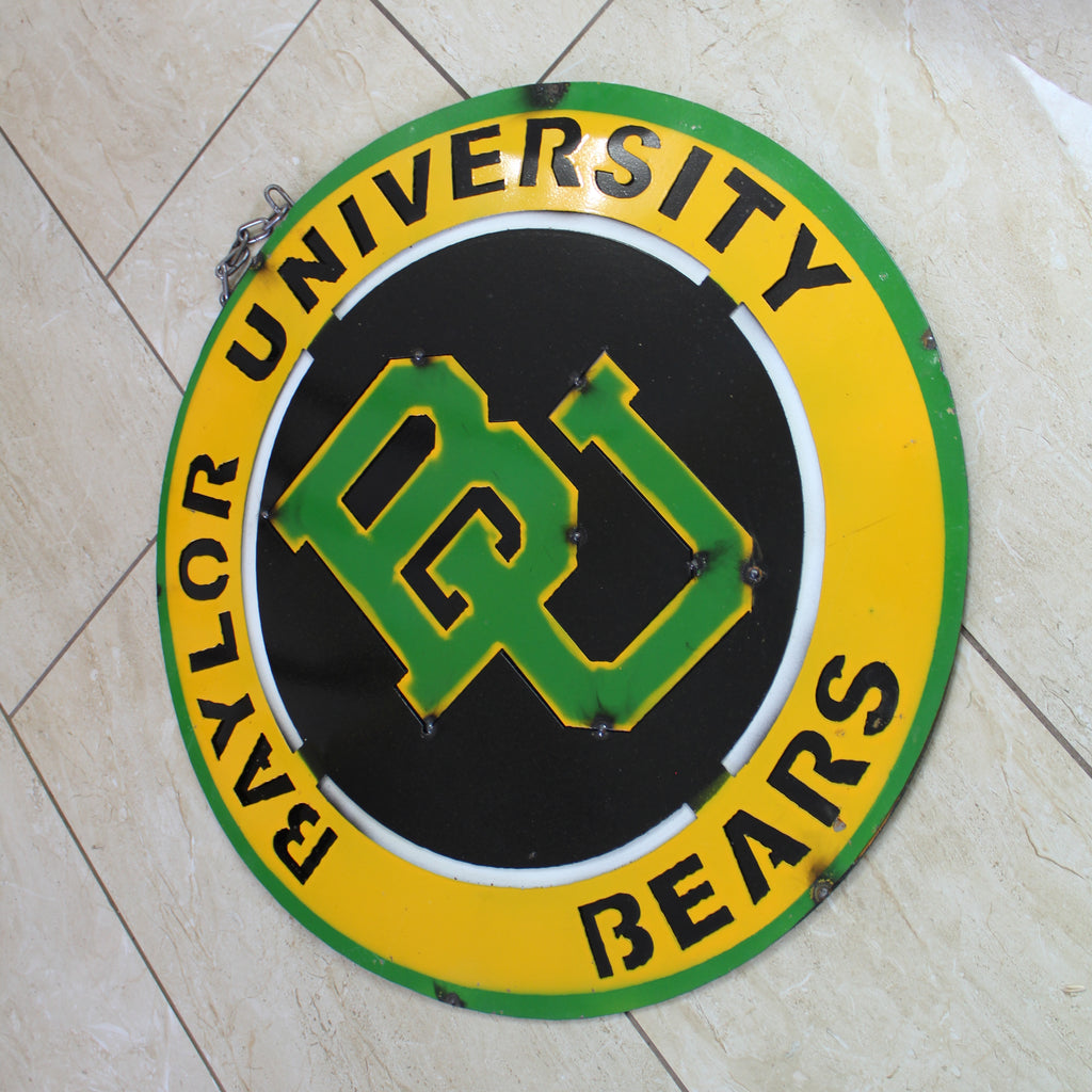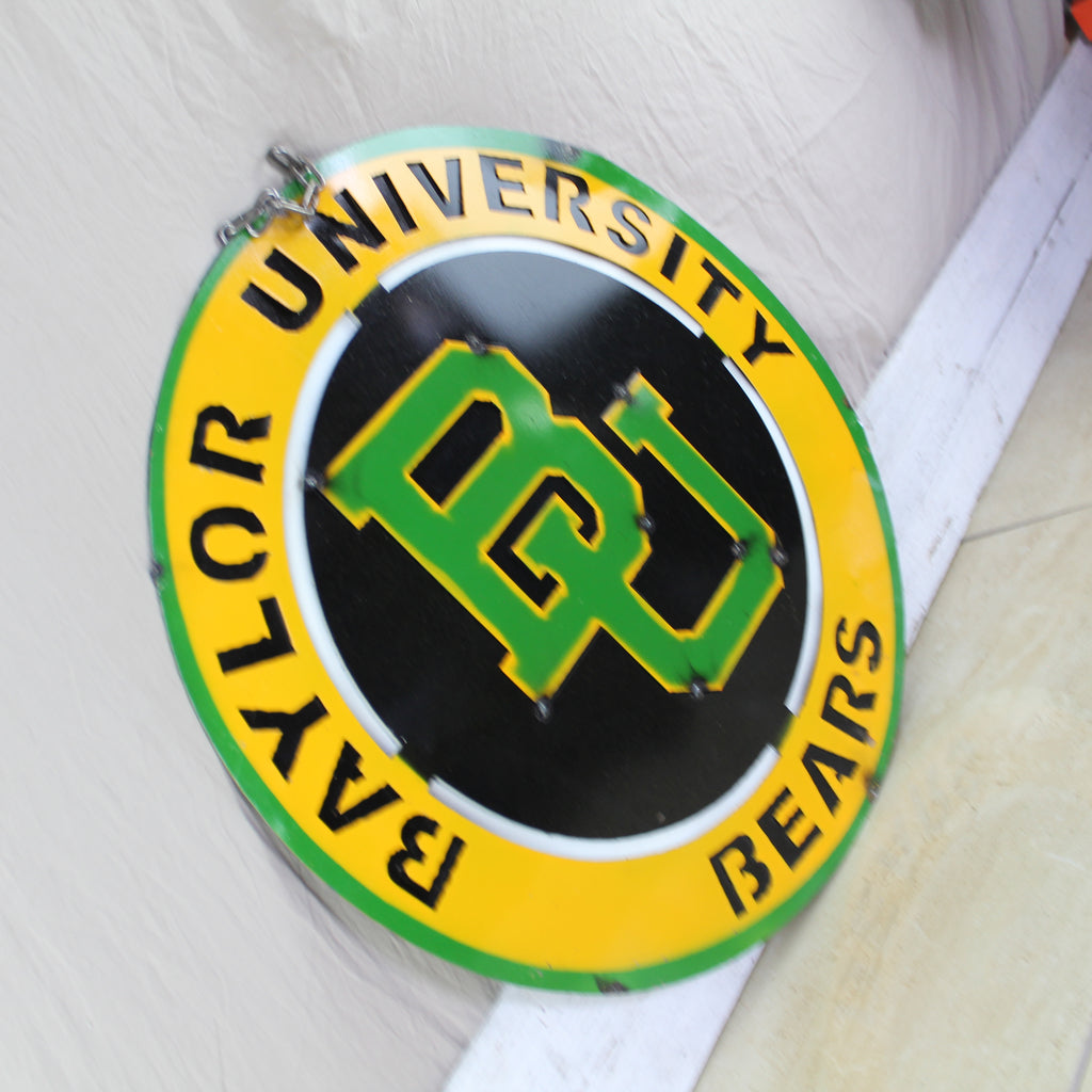 23" BAYLOR BEARS DISC CUSTOM METAL VINTAGE CRAFT SIGN TEAM ART WESTERN HOME DECOR HANDMADE