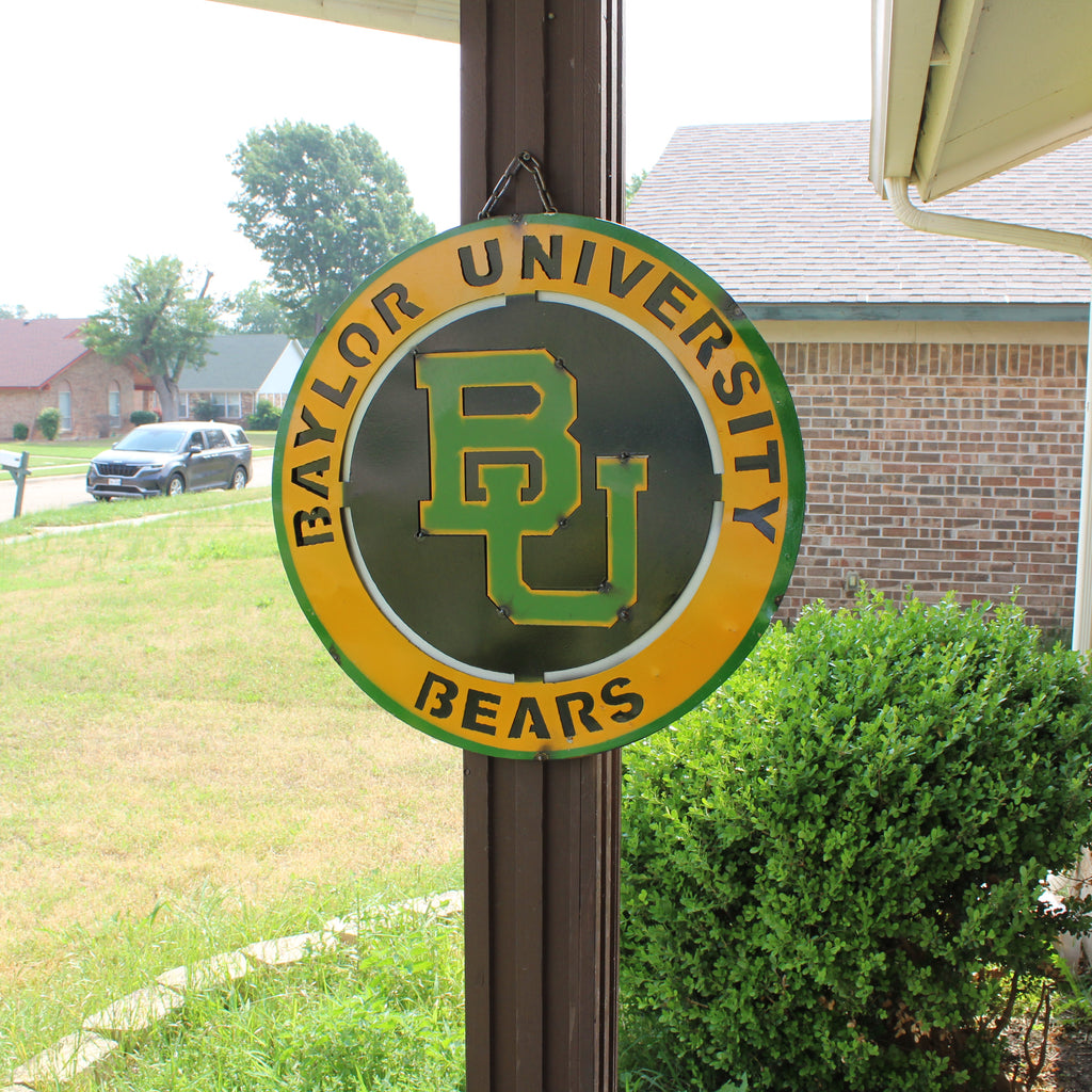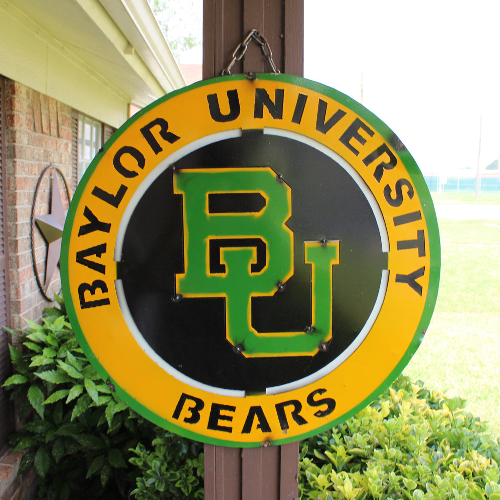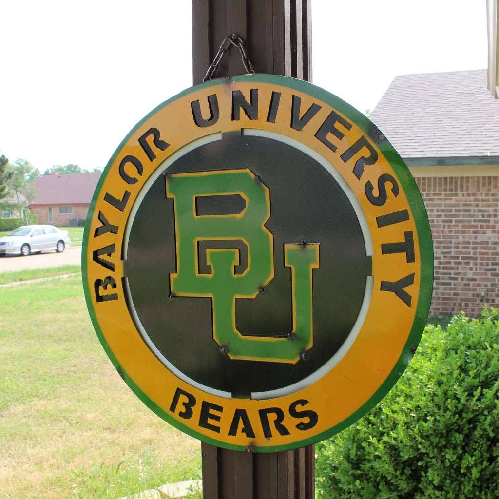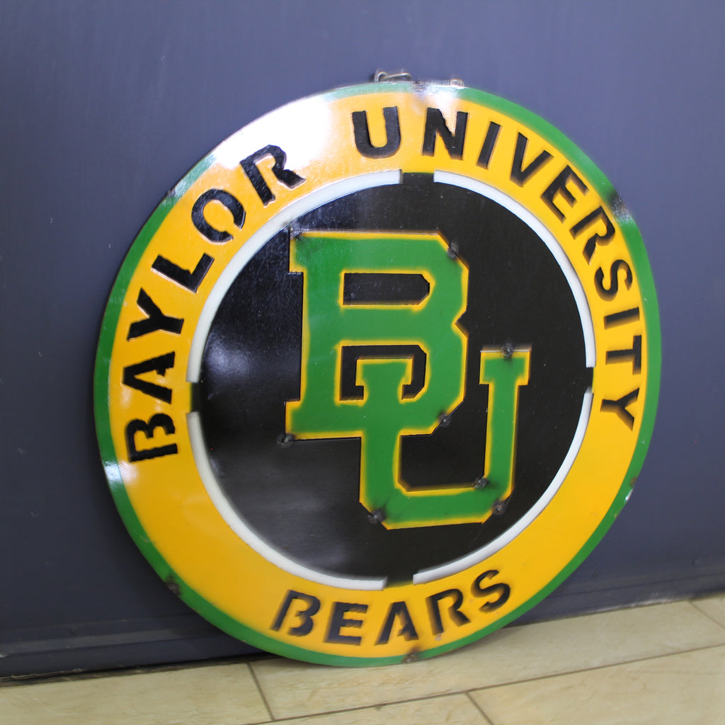 23" BAYLOR BEARS DISC CUSTOM METAL VINTAGE CRAFT SIGN TEAM ART WESTERN HOME DECOR HANDMADE