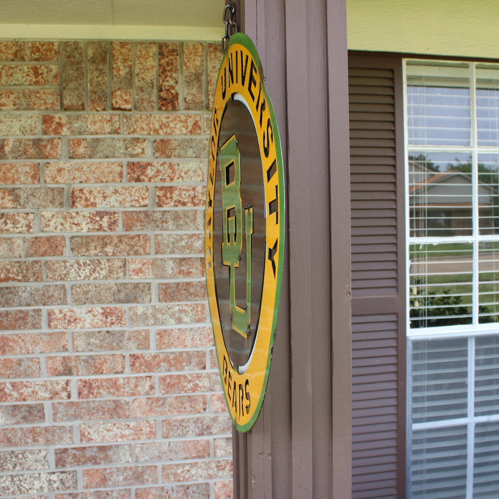 23" BAYLOR BEARS DISC CUSTOM METAL VINTAGE CRAFT DISC SIGN WITH METAL CHAIN HANG TEAM WALL ART WESTERN HOME DECOR HANDMADE