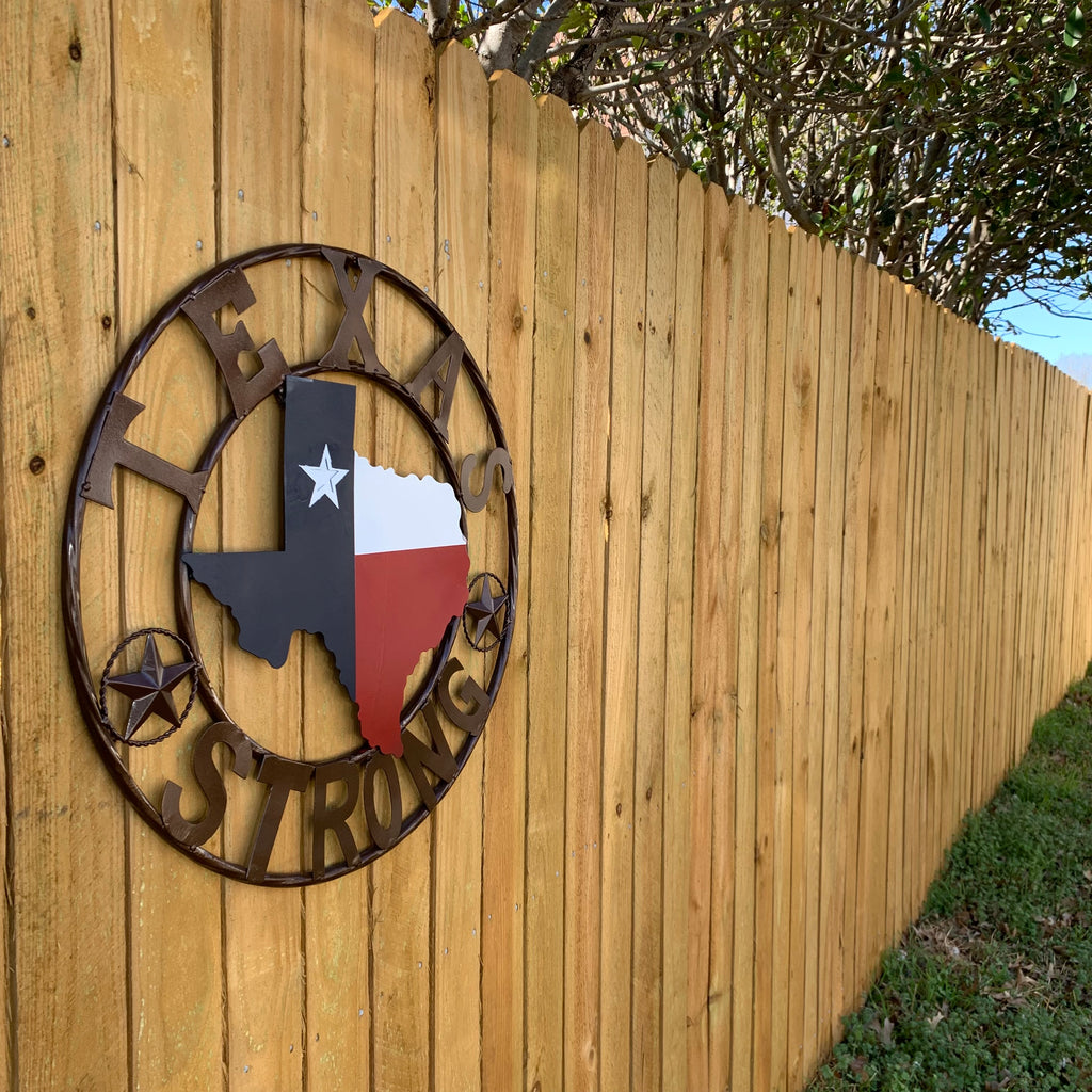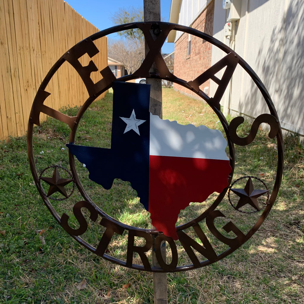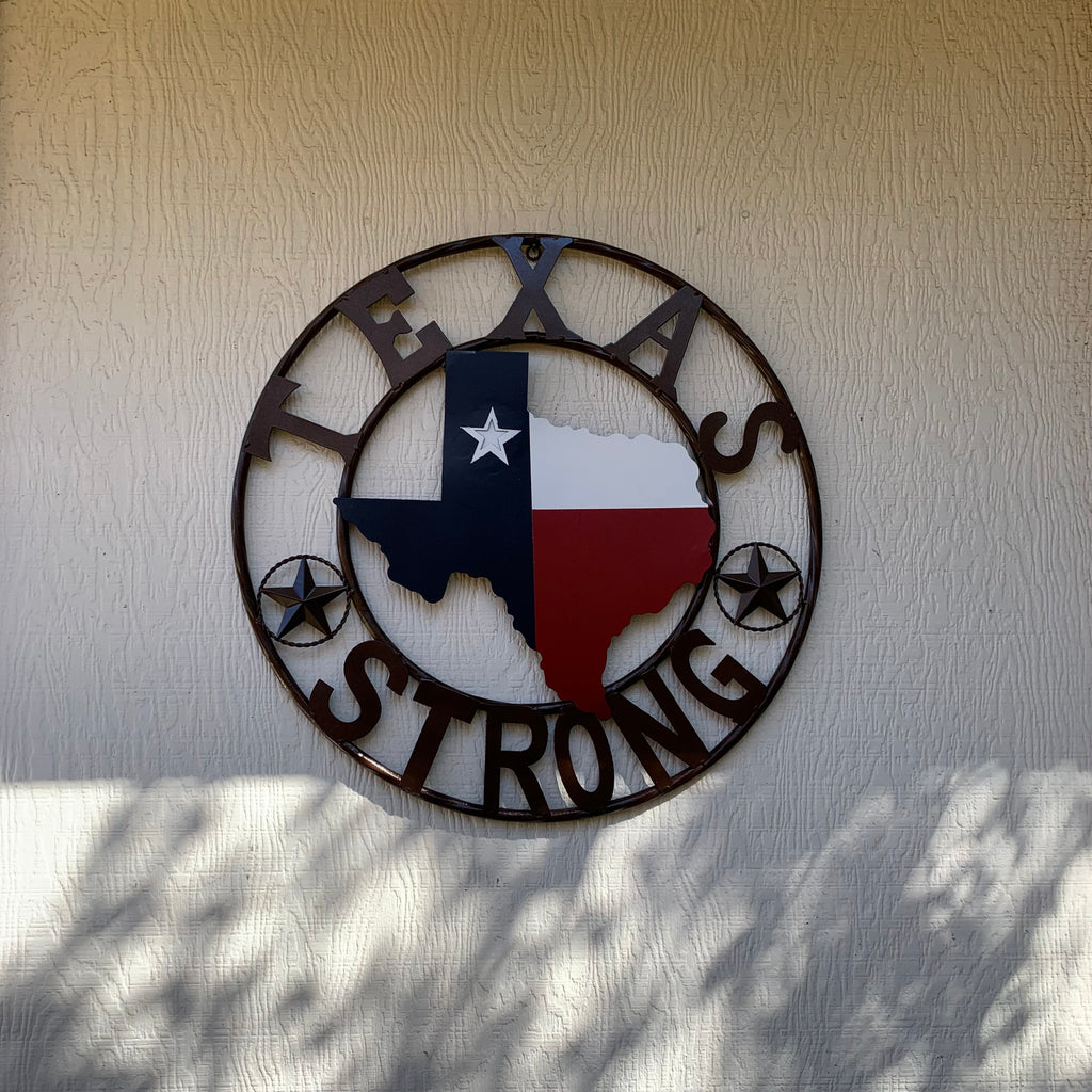 TEXAS STRONG SIGN METAL WALL ART WESTERN HOME DECOR RED WHITE BLUE WITH BRONZE RING HANDMADE #EH13212
