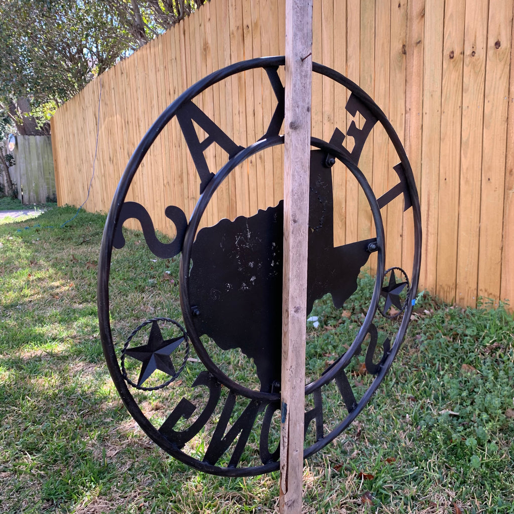 A Beautiful brand new Handmade Rustic Barn Metal Sign to add the perfect touch to your primitive country décor!! This magnificent décor is a fun and unique way to declare your love for the house warming, Lake House, Farmhouse, Ranch, Farms, Patio, Porch, Garden, Cabin, Shed, Barn Shed, Garage, Workshop, Fireplace décor, Family Room, Mancave, Mother's Day, Father's Day, Memorial Day, Barn Shed, Garage, BAR & PUB, Fireplace Decor, Family Room Decor, Garden, Patio, Porch, Chimney, Barndominium, Mancave, Momcave, Game room, School Graduation, Weddings, Birthdays, Anniversary Gifts, Cowboys, Cowgirls, Military, TEXAS & AMERICANA USA Home Decor & Western Country home décor, boldly styled and richly detailed photos shown finish Metalcraft. The center & outer circle have a twisted rope look. Our Barn decor are nicely distressed and have a hole hook at the top for easy display. Best high quality of fine elegant home decor art craft. Great gift for any occasions. Perfect for Indoor & Outdoor Home & Garden Décor. Excellent Condition. Brand new. Handmade Craft.