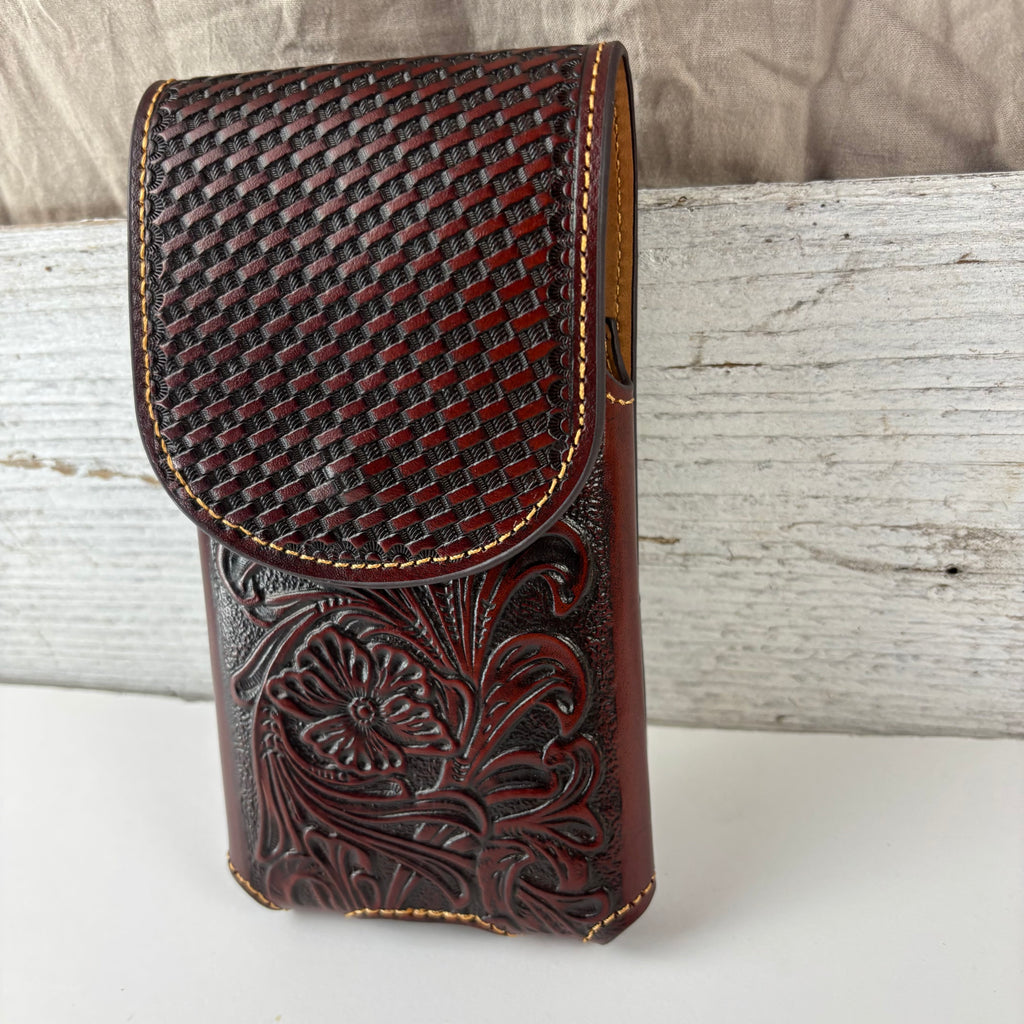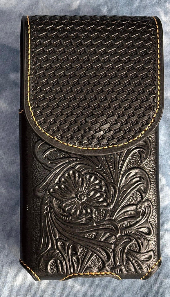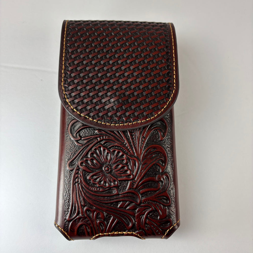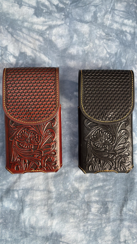 7" PLAIN FLORAL GENUINE LEATHER POUCH OVERSIZE UNIVERSAL EXTRA LARGE WESTERN CELL PHONE HOLSTER POUCH BELT LOOP UNIVERSAL