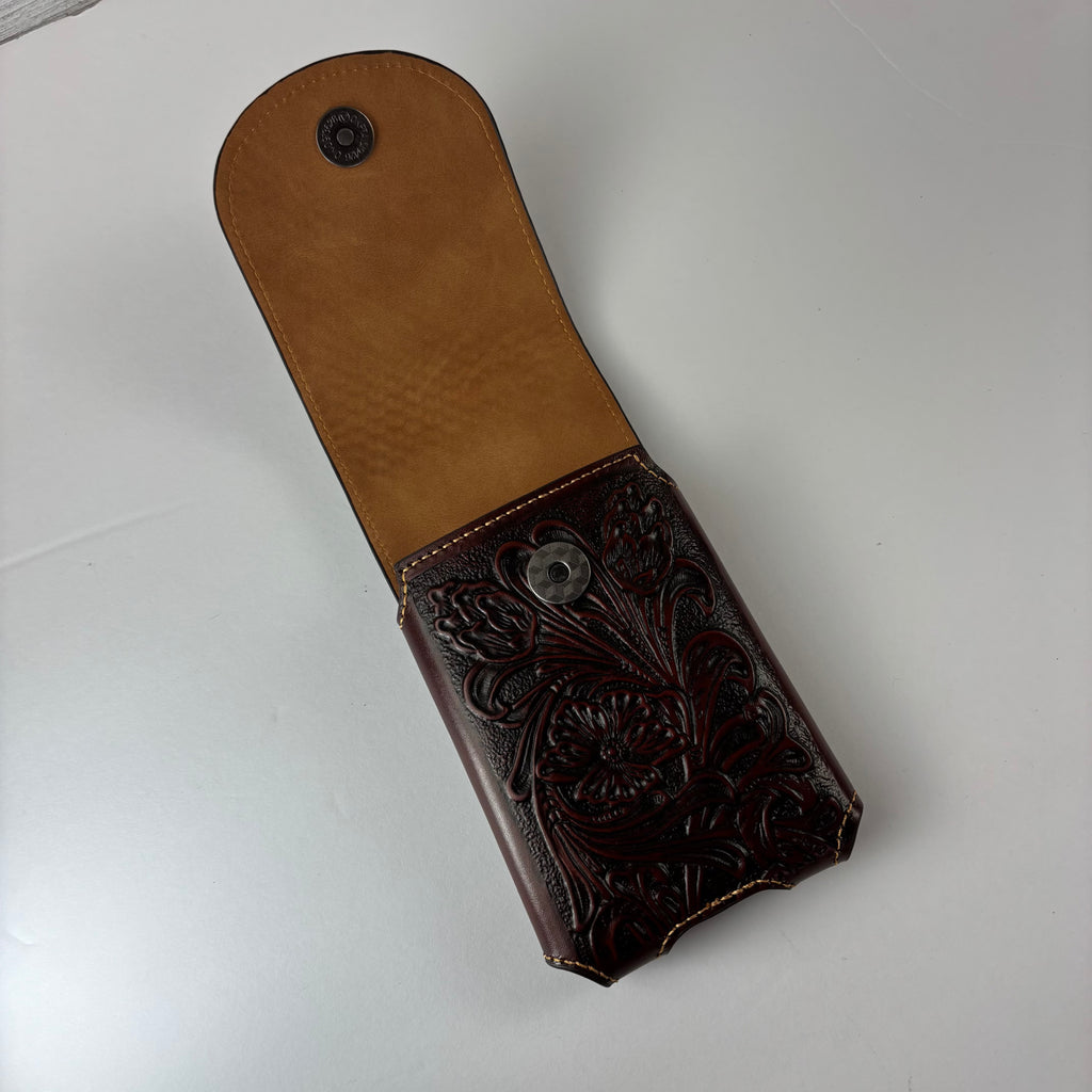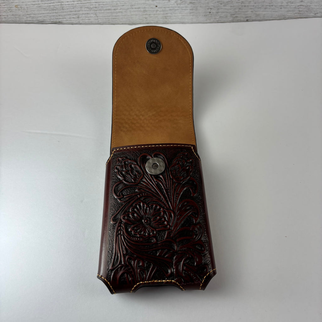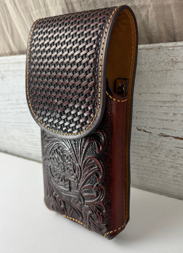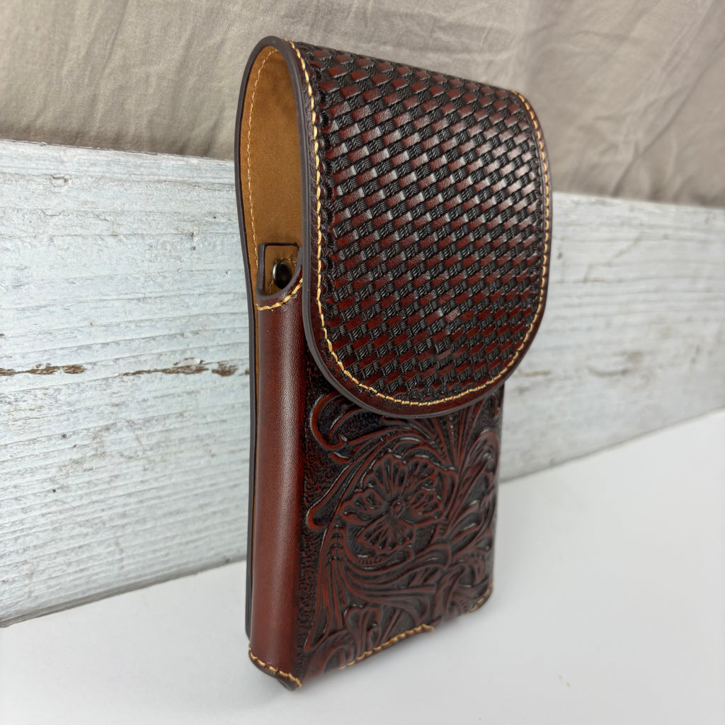 7" PLAIN FLORAL GENUINE LEATHER POUCH OVERSIZE UNIVERSAL EXTRA LARGE WESTERN CELL PHONE HOLSTER POUCH BELT LOOP UNIVERSAL