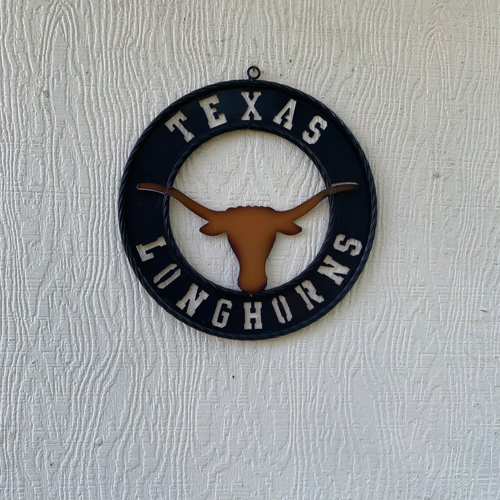 TEXAS LONGHORNS WIDE BAND RING METAL CUSTOM VINTAGE CRAFT WALL ART TEAM SIGN HANDMADE