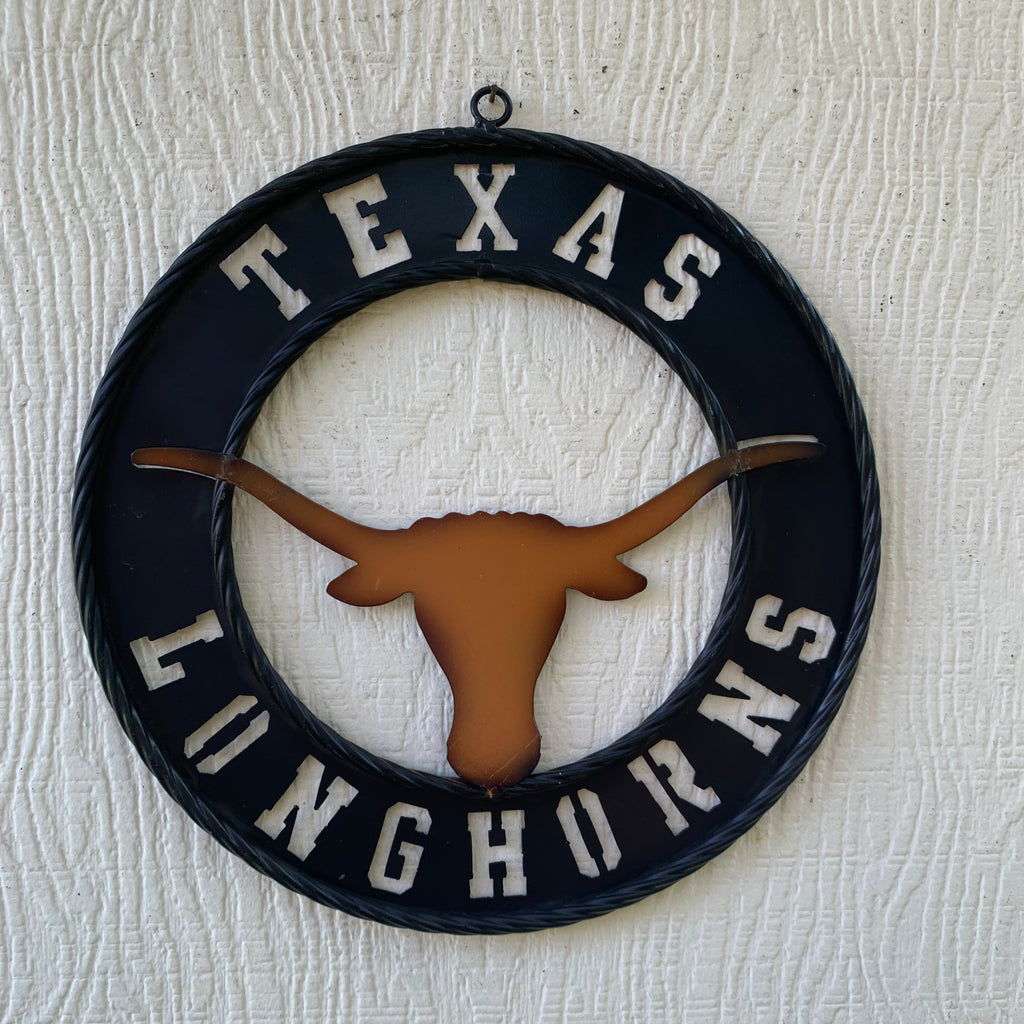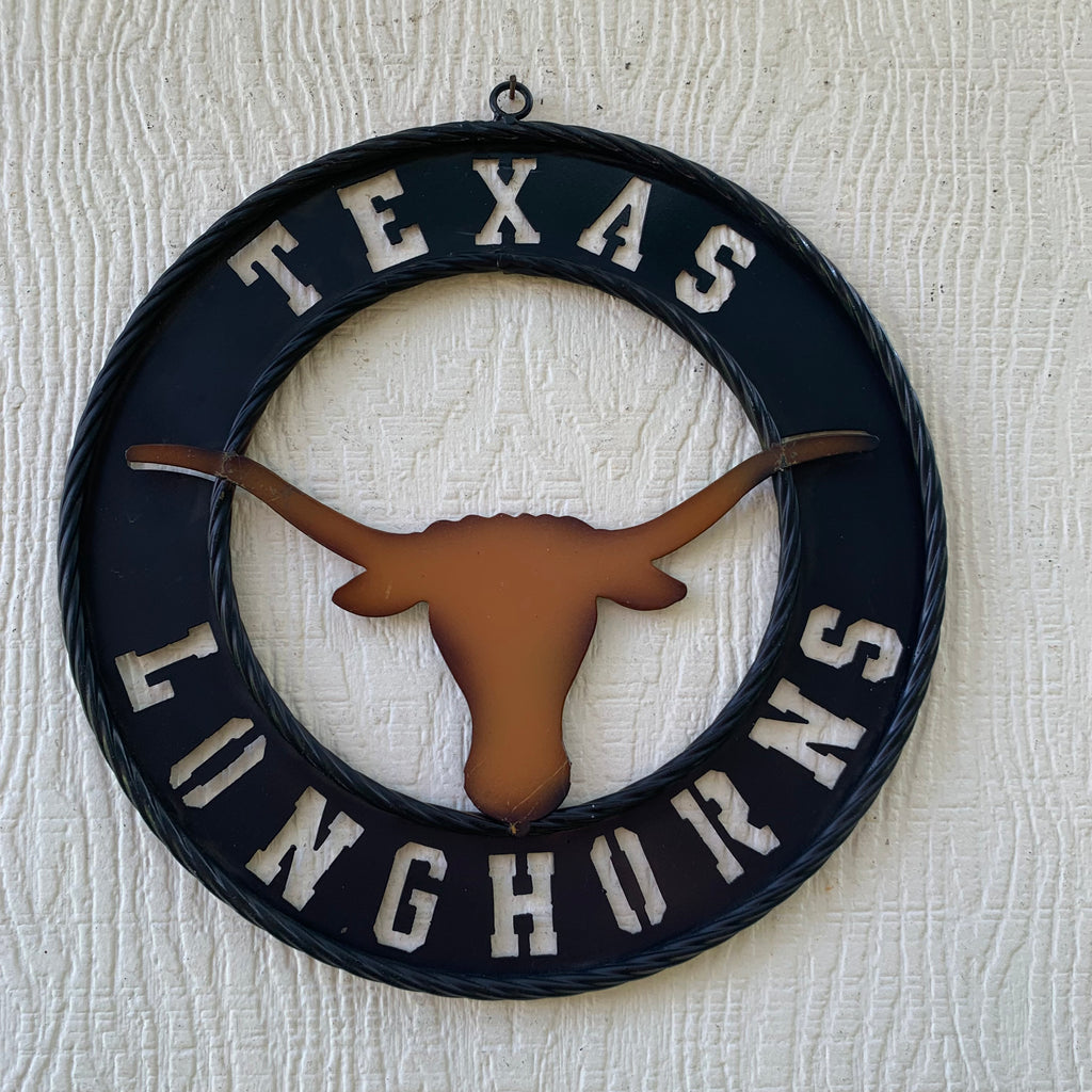 TEXAS LONGHORNS WIDE BAND RING CUSTOM METAL VINTAGE CRAFT WALL ART WESTERN HOME DECOR