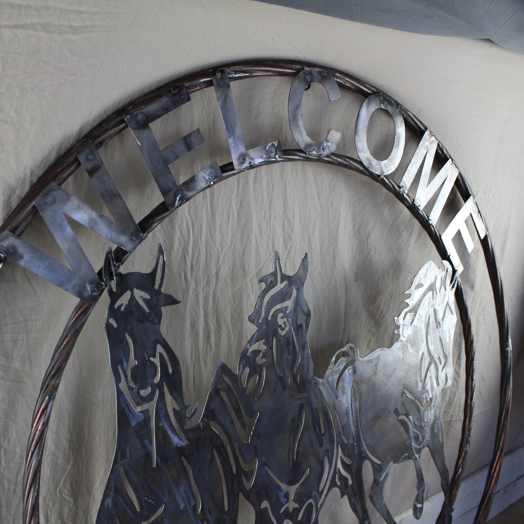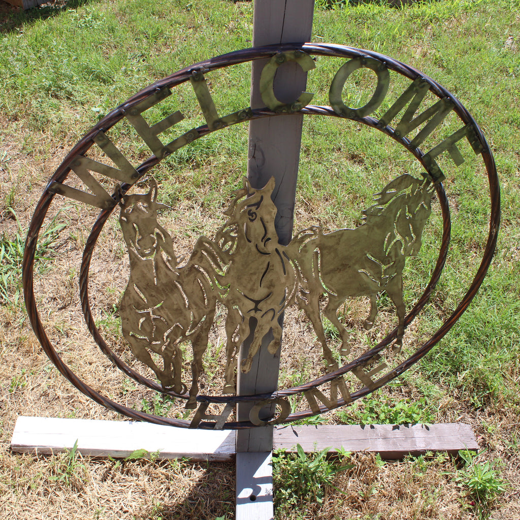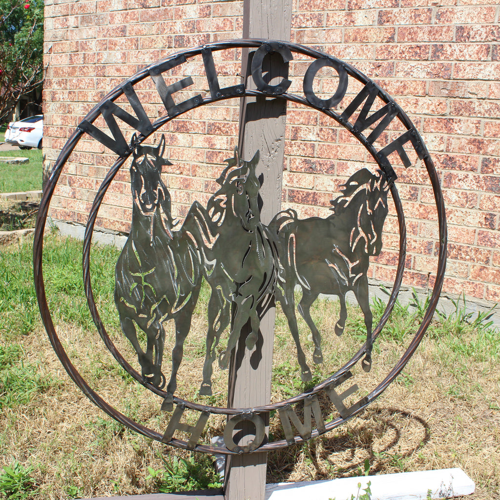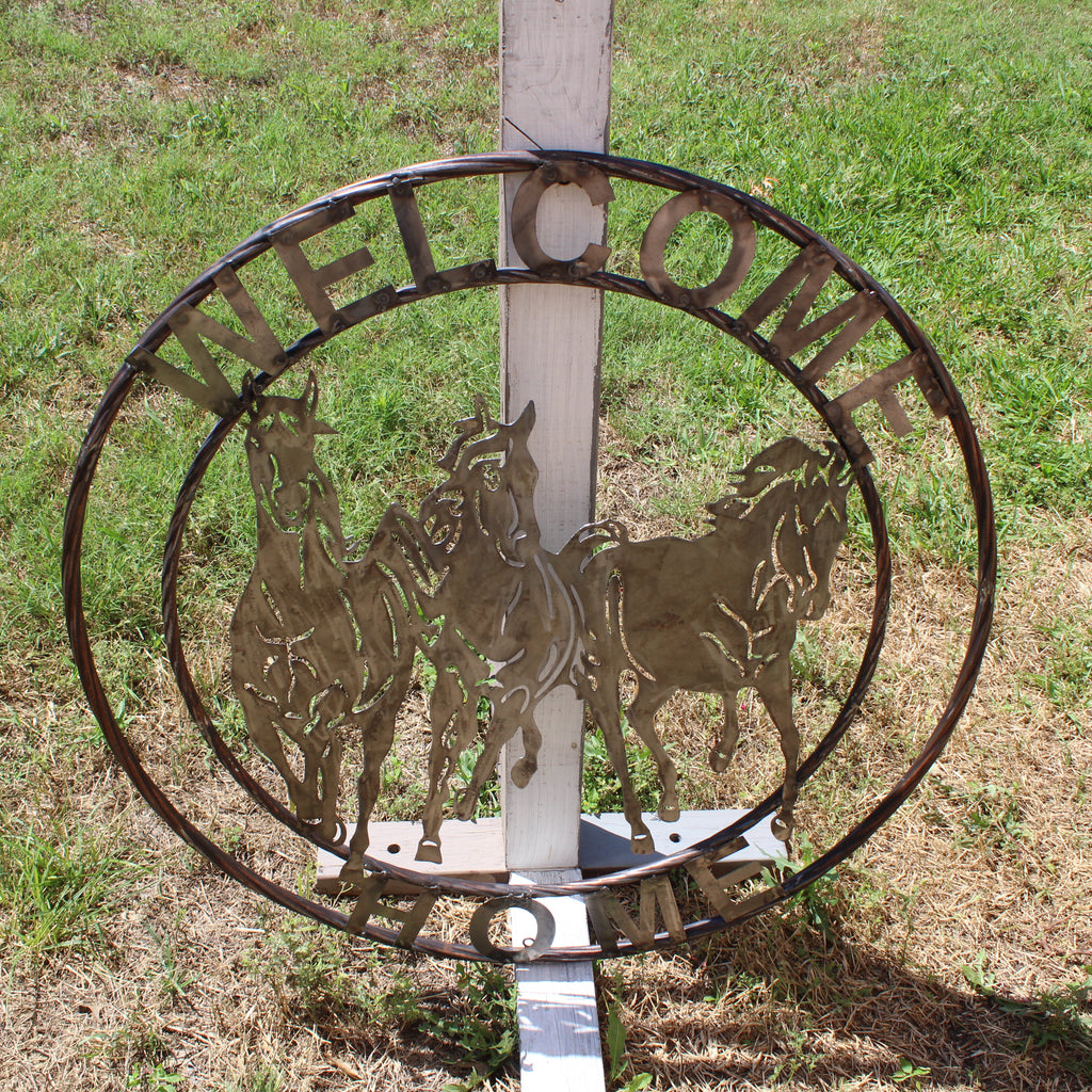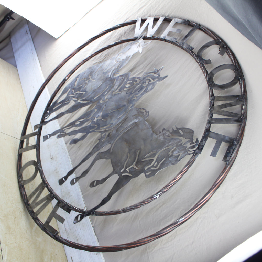 WELCOME RUNNING HORSES RAW METAL SIGN UNPAINTED WESTERN HOME DECOR HANDMADE NEW