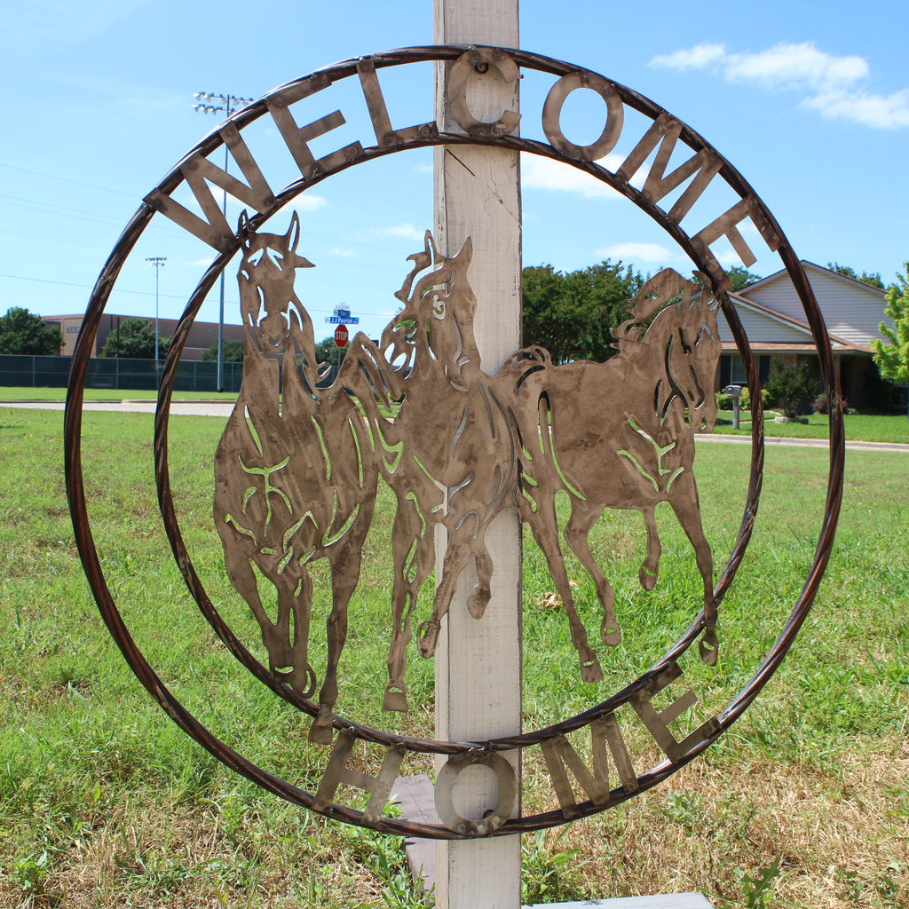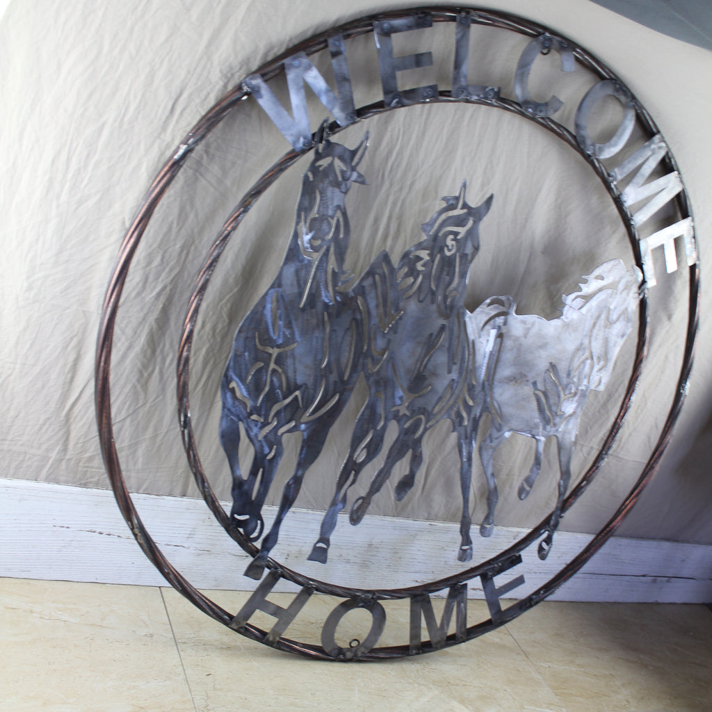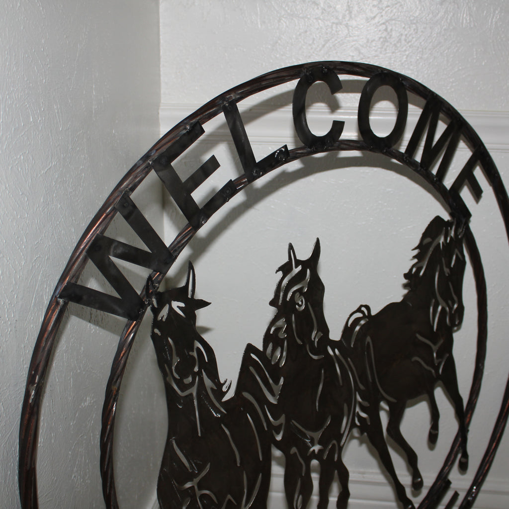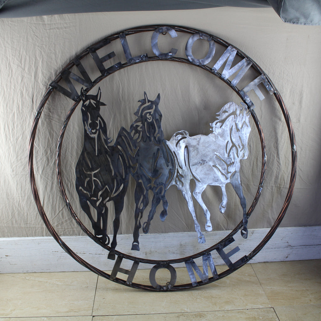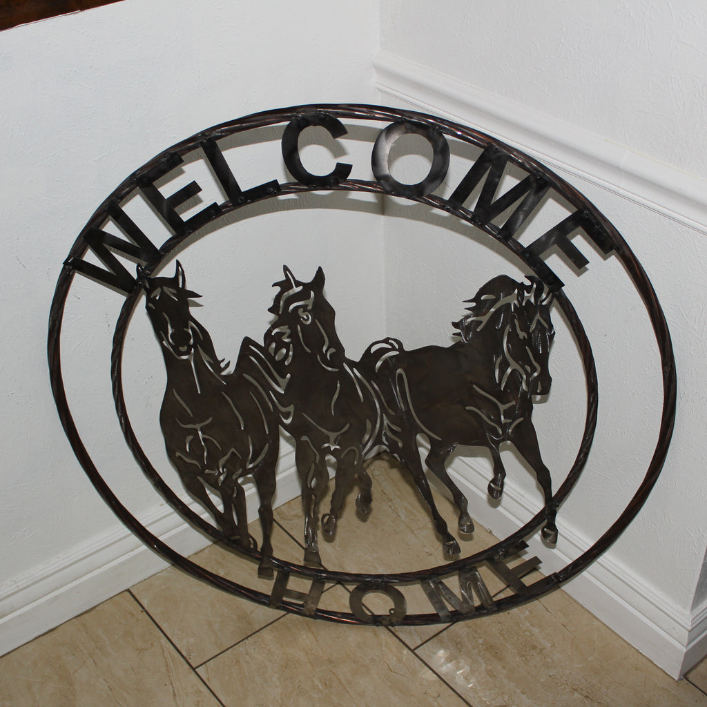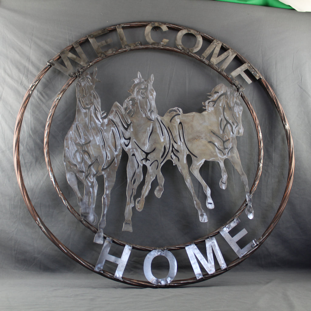 WELCOME RUNNING HORSES RAW METAL SIGN UNPAINTED WESTERN HOME DECOR HANDMADE NEW