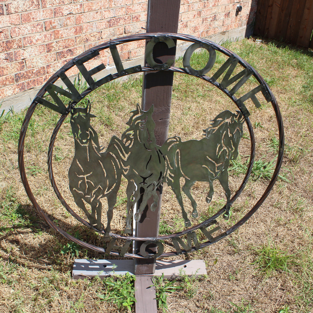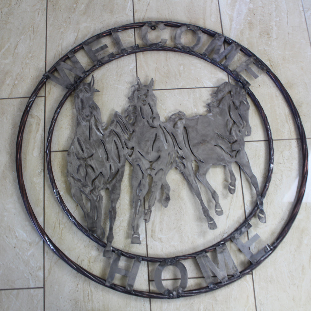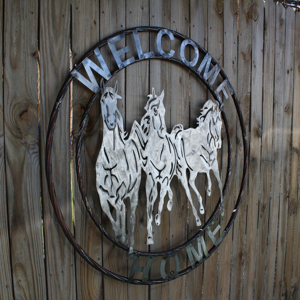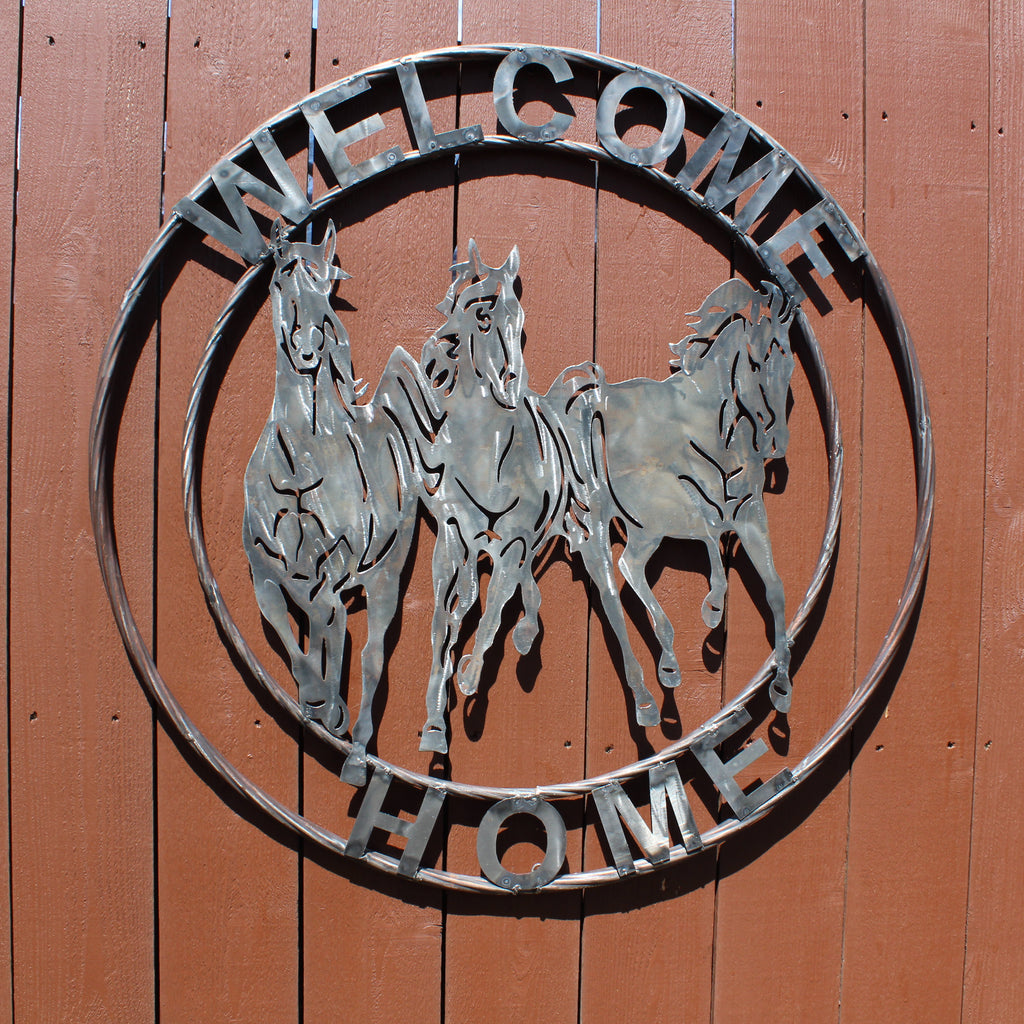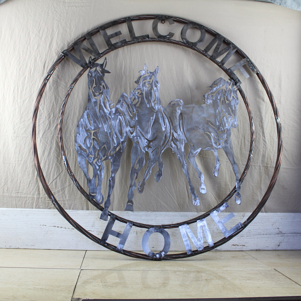 WELCOME RUNNING HORSES RAW METAL SIGN UNPAINTED WESTERN HOME DECOR HANDMADE NEW
