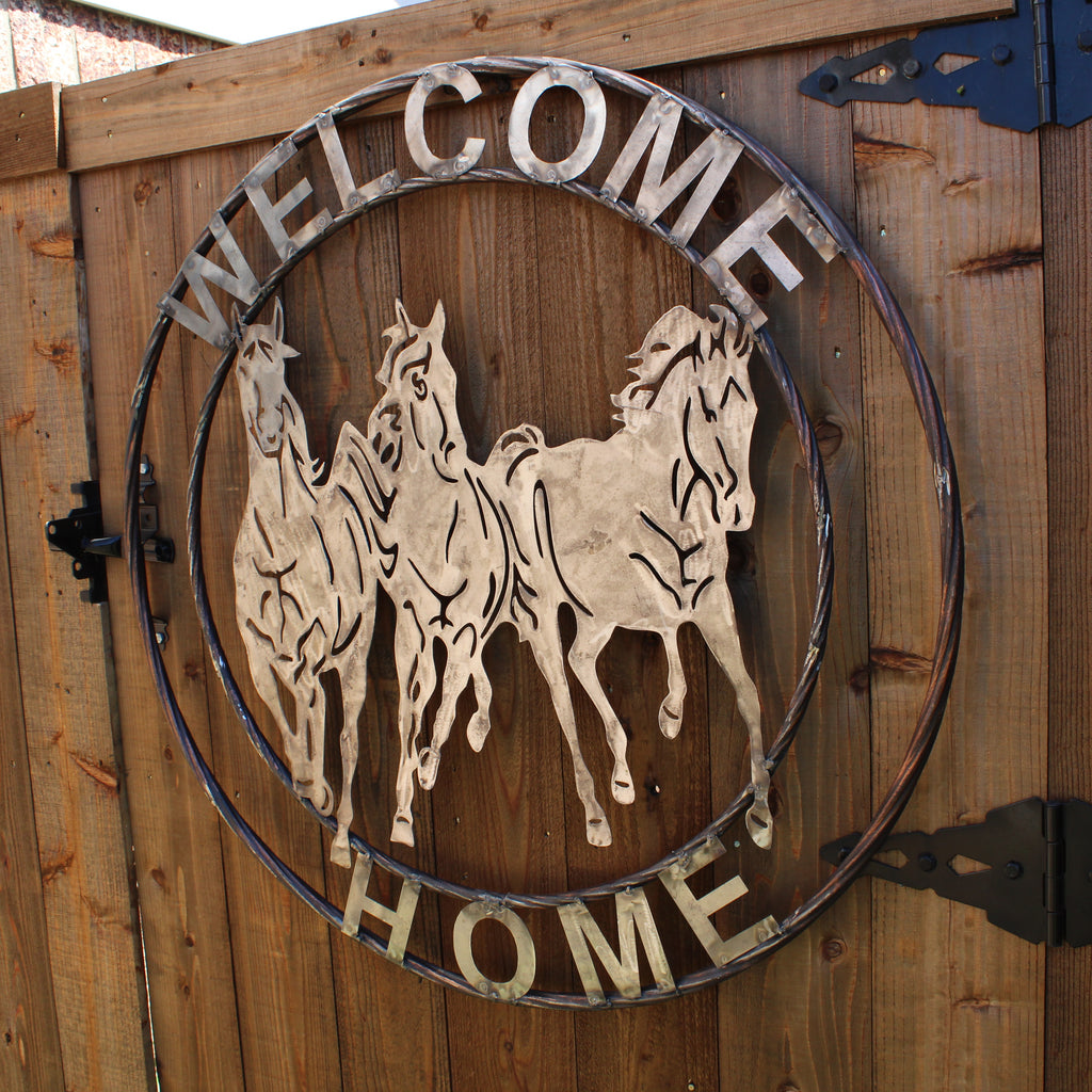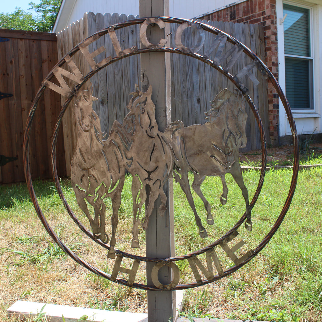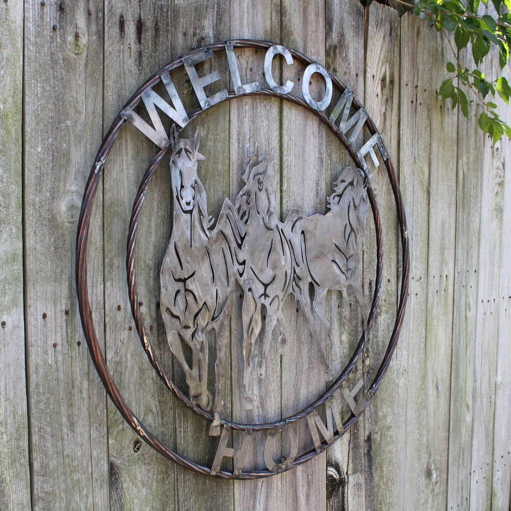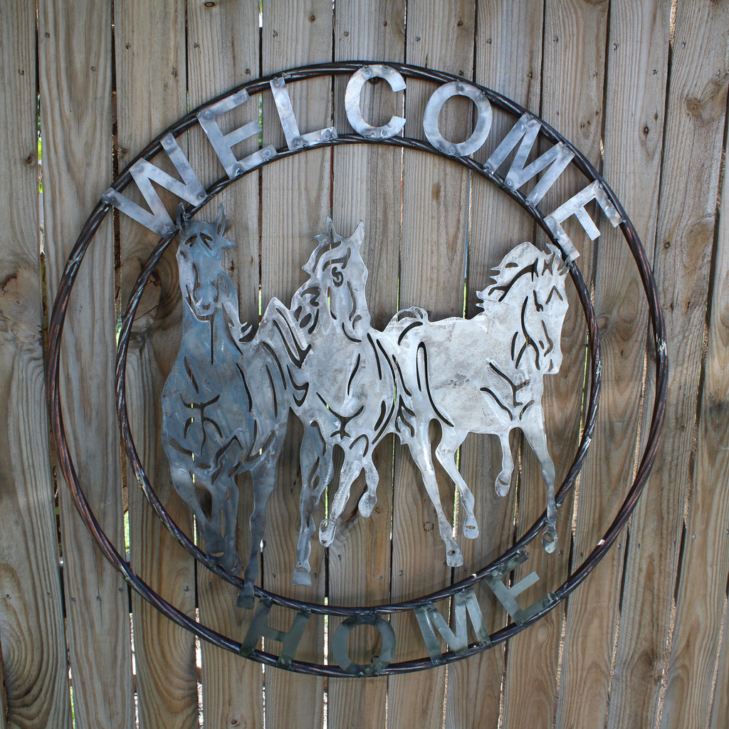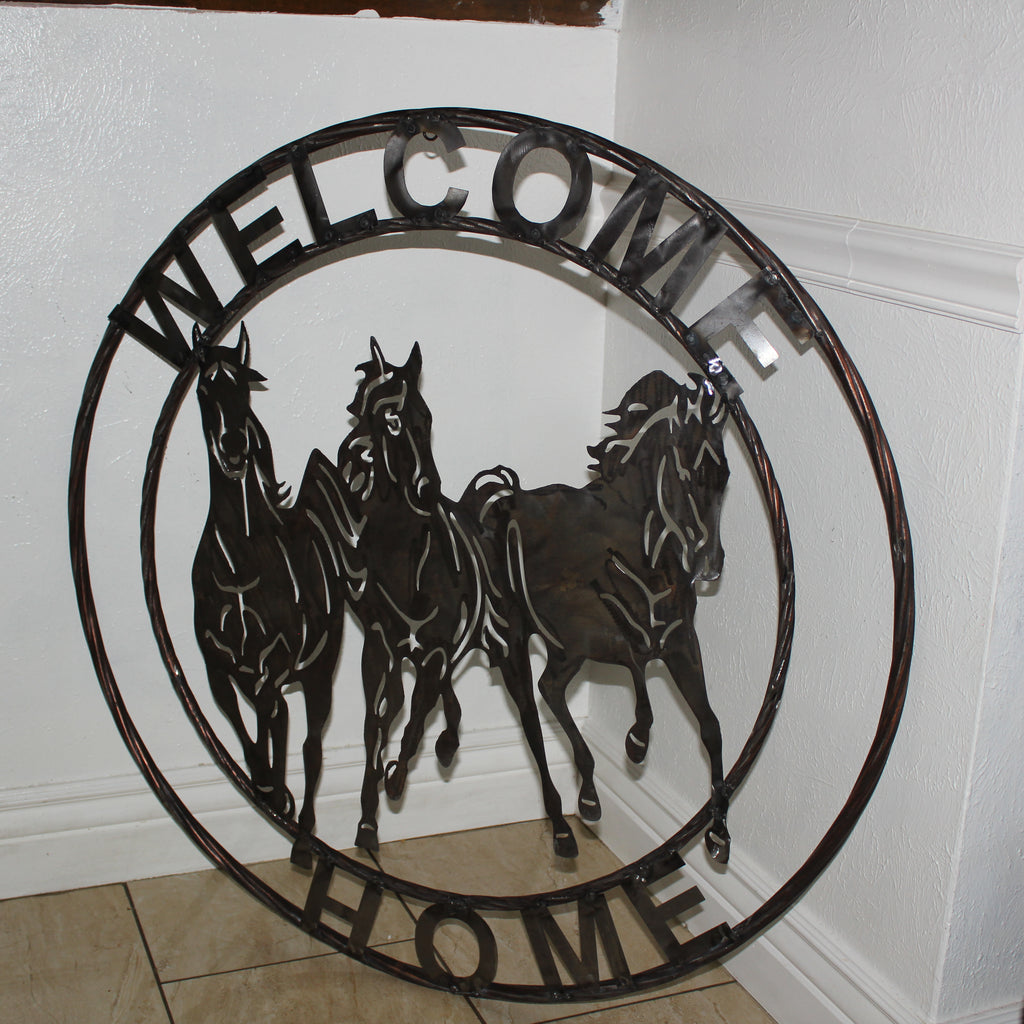 WELCOME RUNNING HORSES RAW METAL SIGN UNPAINTED WESTERN HOME DECOR HANDMADE NEW