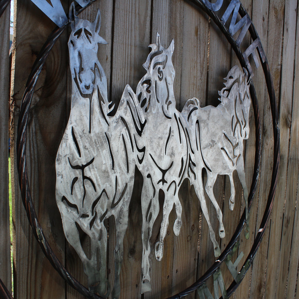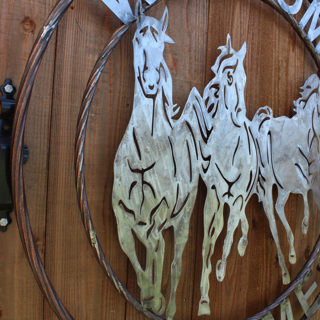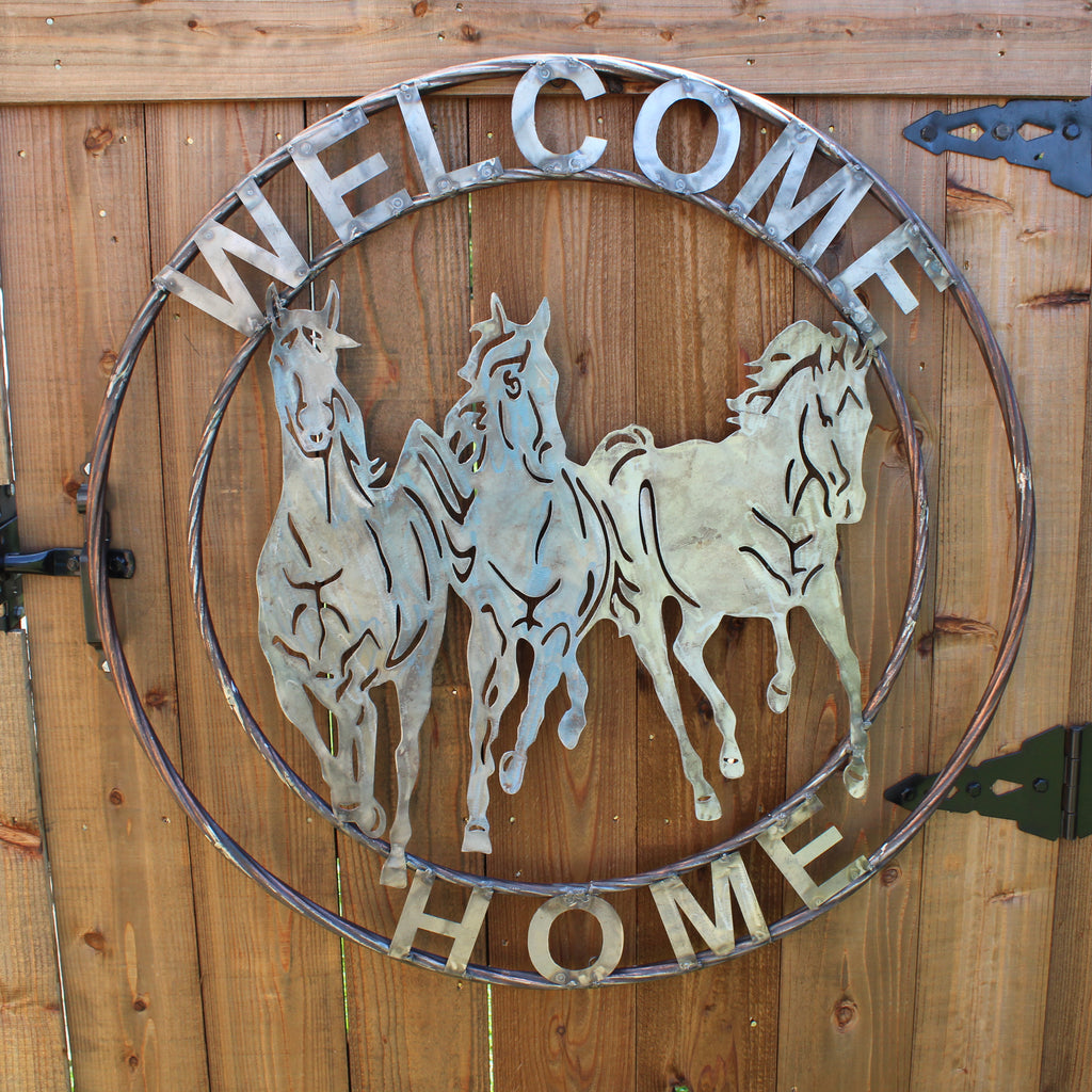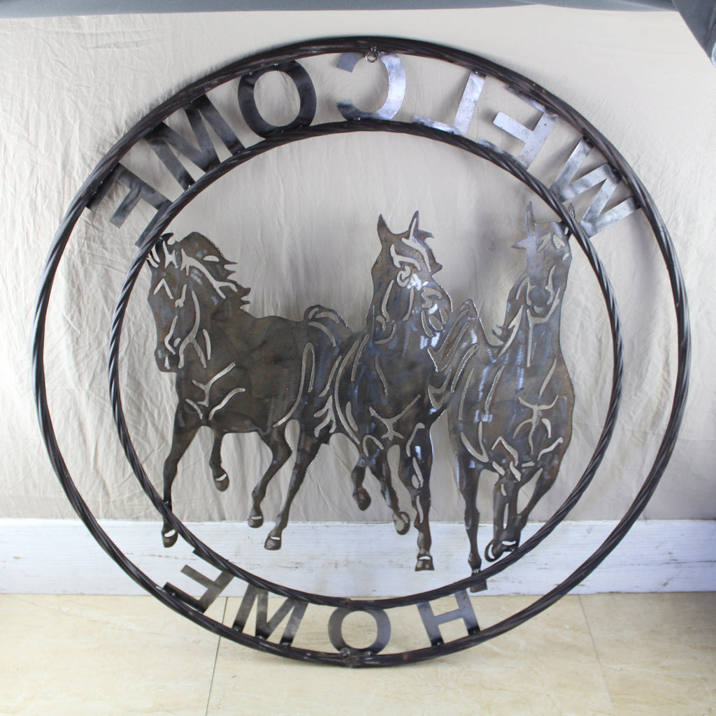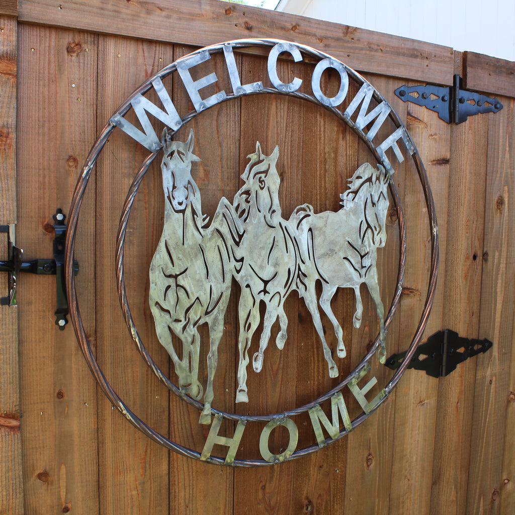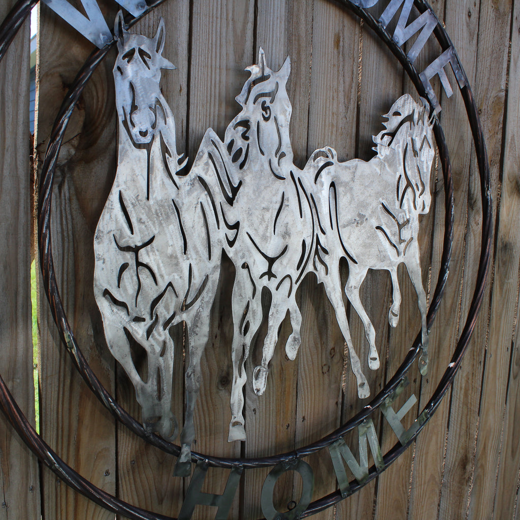 WELCOME RUNNING HORSES RAW METAL SIGN UNPAINTED WESTERN HOME DECOR HANDMADE NEW