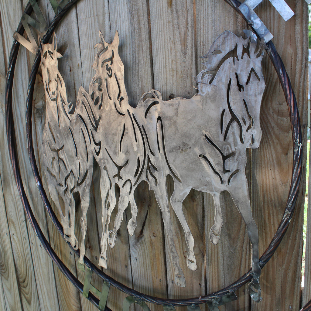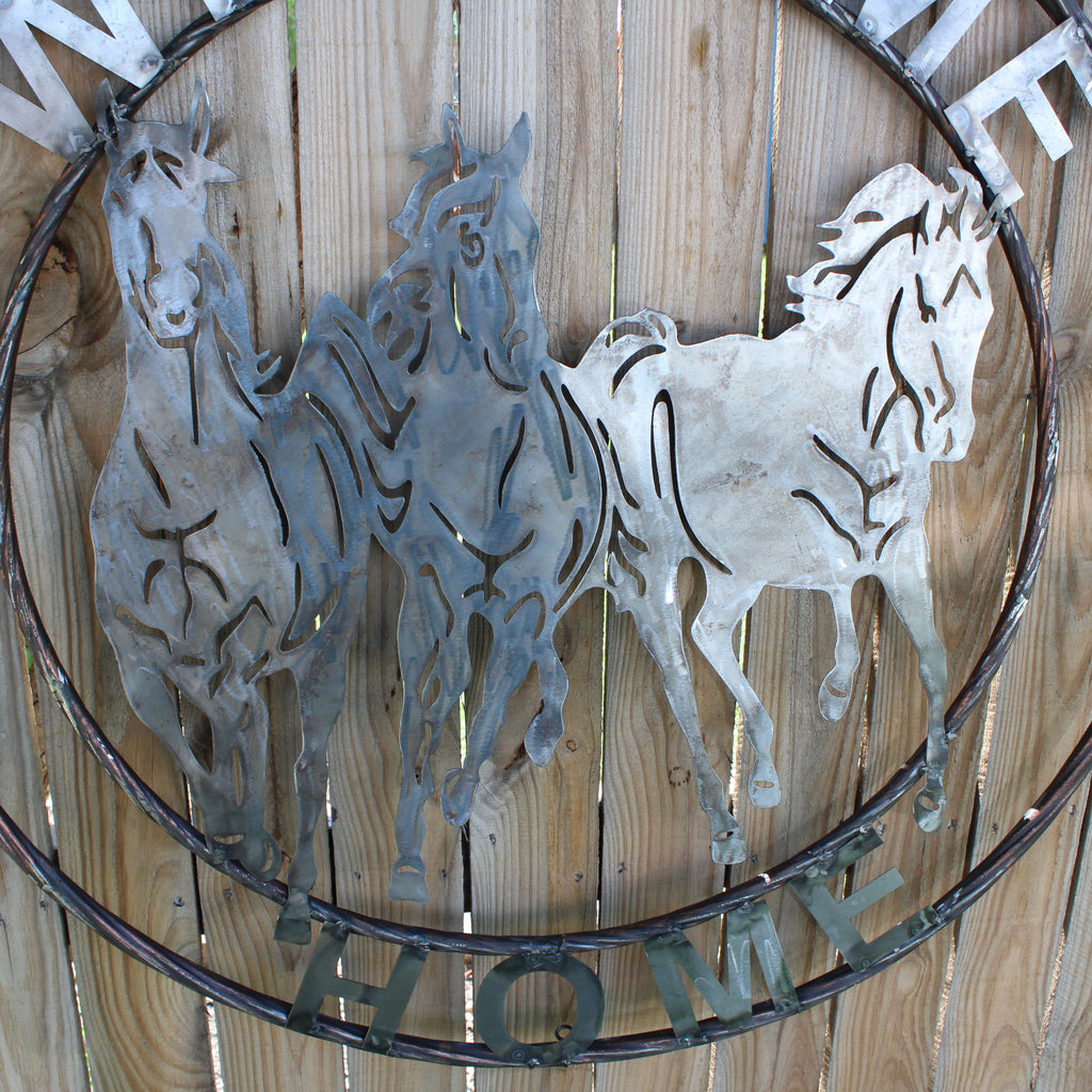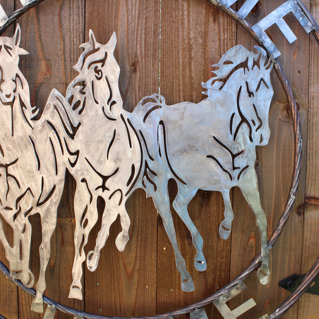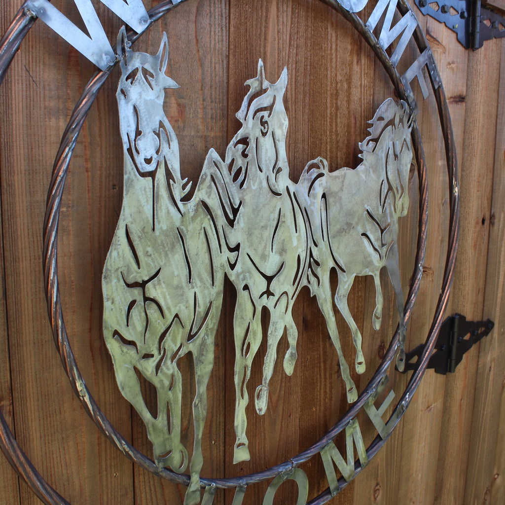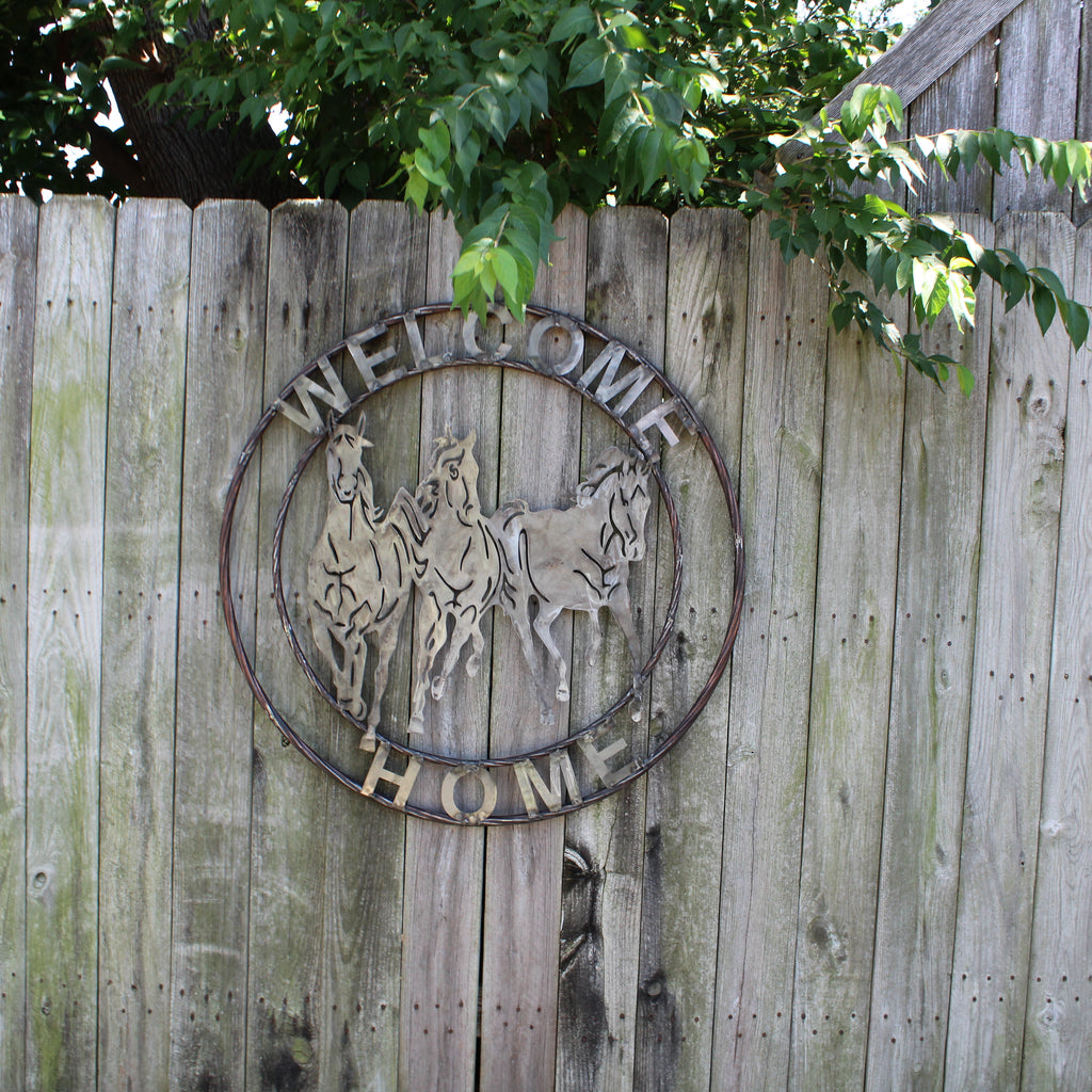 WELCOME RUNNING HORSES RAW METAL SIGN UNPAINTED WESTERN HOME DECOR HANDMADE NEW