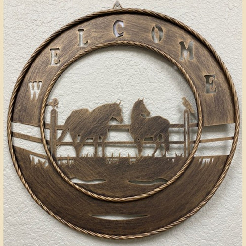 WELCOME HORSES METAL SIGN WESTERN HOME DECOR RUSTIC BRONZE NEW