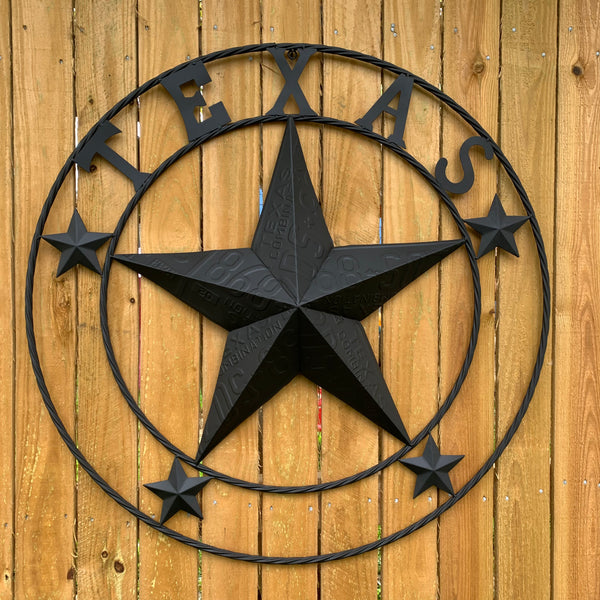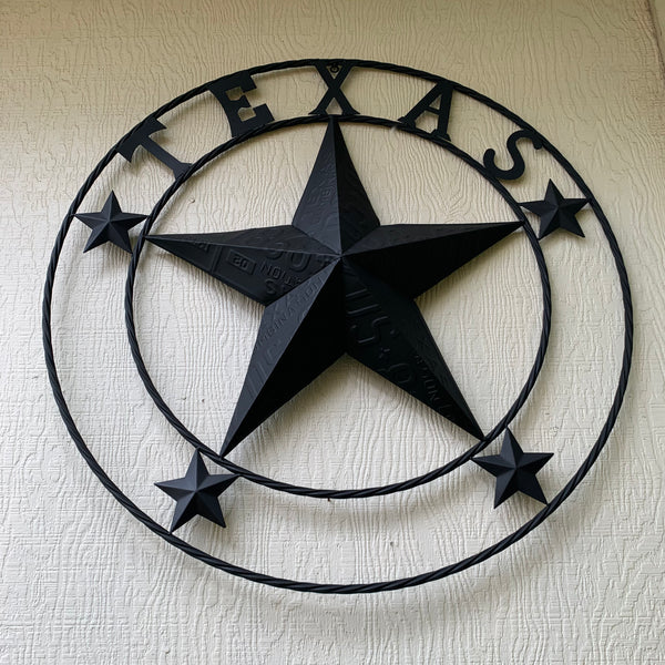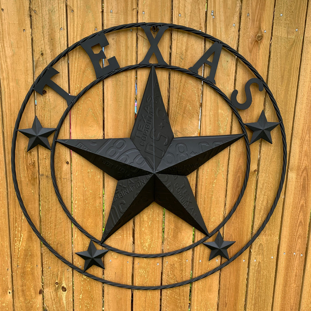 24", 32", 34", 40" TEXAS LICENSE PLATE RUSTIC BLACK BARN STAR METAL WALL WESTERN HOME DECOR RUSTIC TEXAS ART NEW