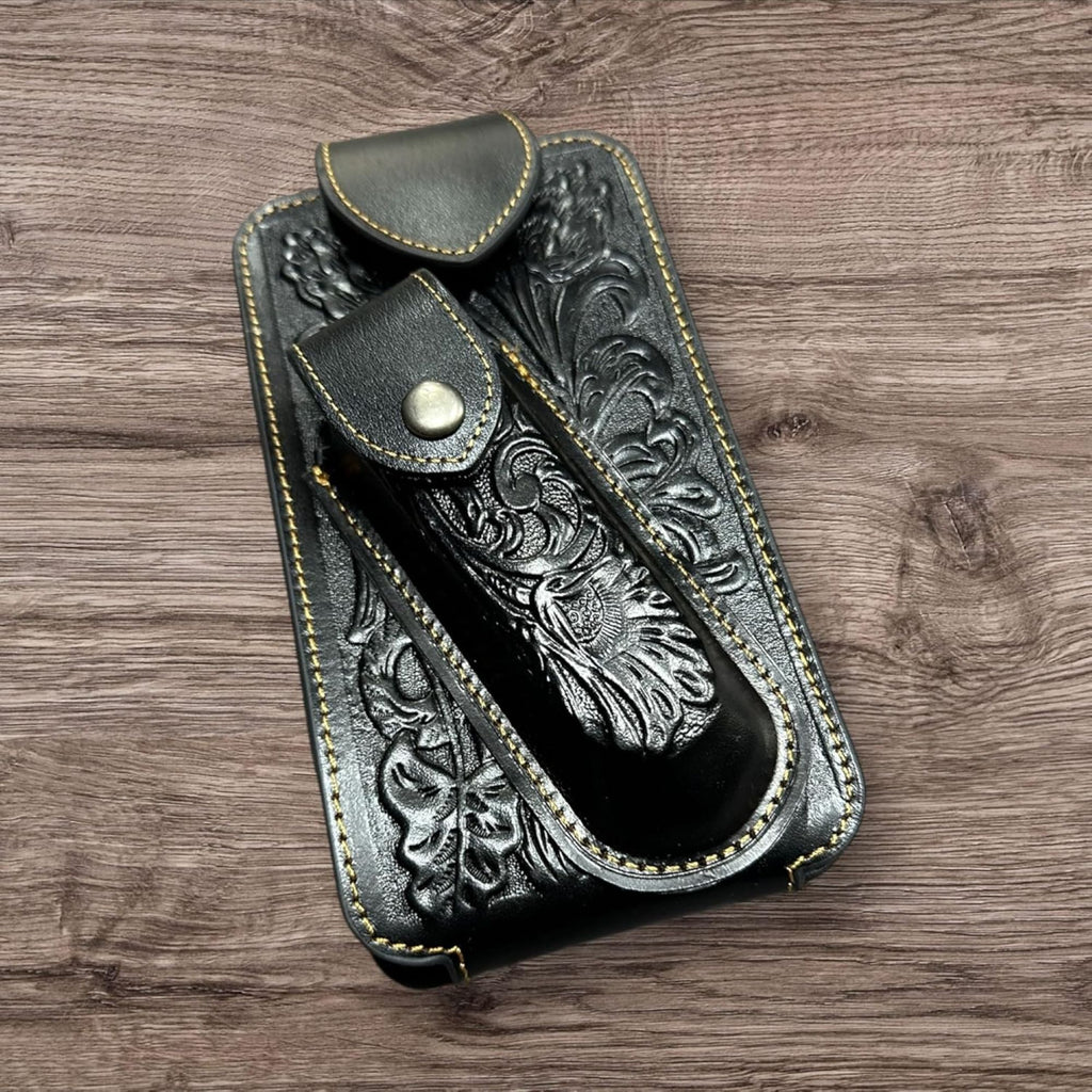 FLORAL & KNIFE HOLDER GENUINE LEATHER VERTICAL POUCH OVERSIZE UNIVERSAL EXTRA LARGE WESTERN CELL PHONE HOLSTER POUCH BELT LOOP UNIVERSAL
