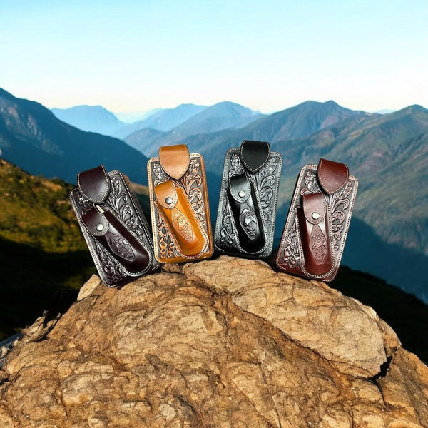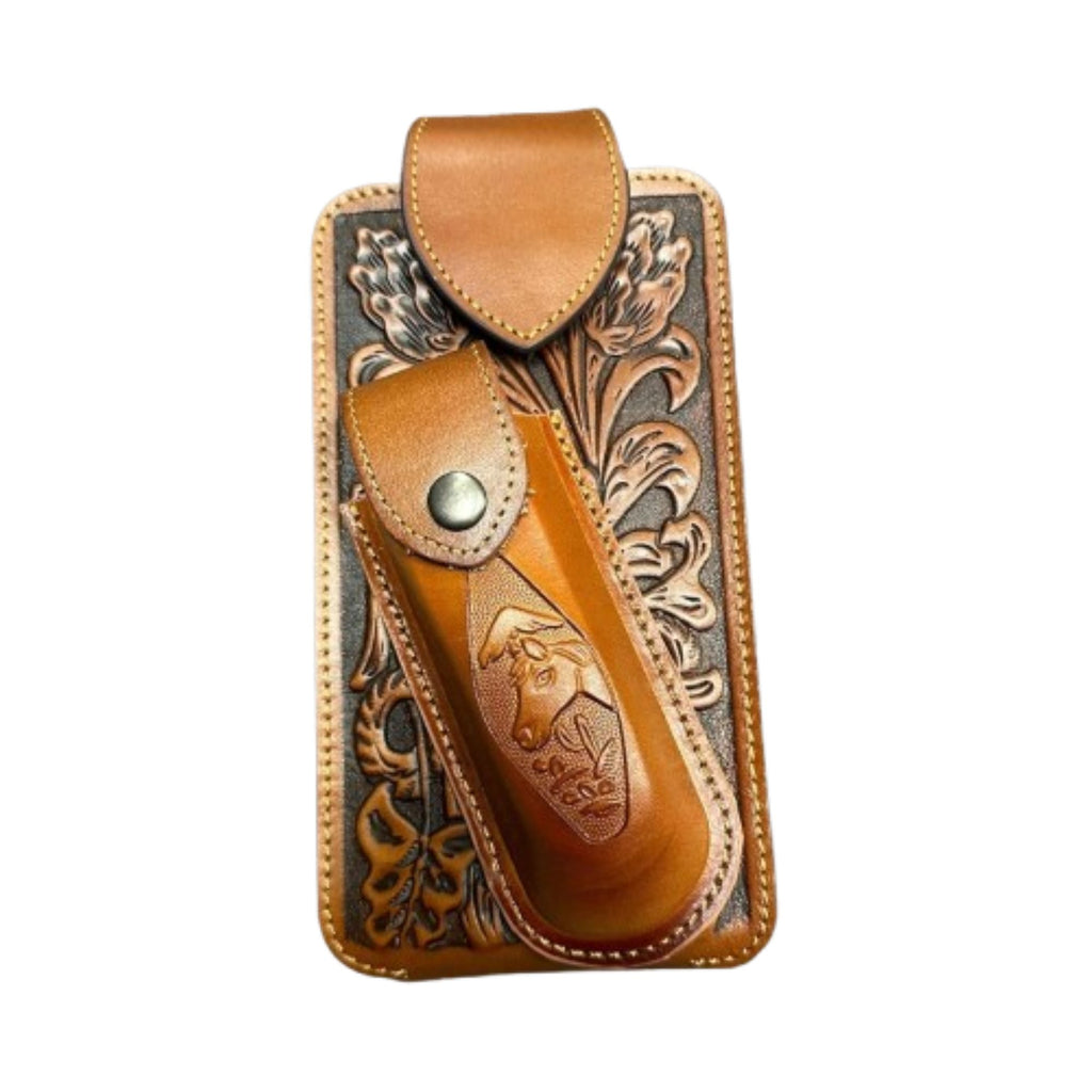 HORSE FLORAL & KNIFE HOLDER GENUINE LEATHER VERTICAL POUCH OVERSIZE UNIVERSAL EXTRA LARGE WESTERN CELL PHONE HOLSTER POUCH BELT LOOP UNIVERSAL