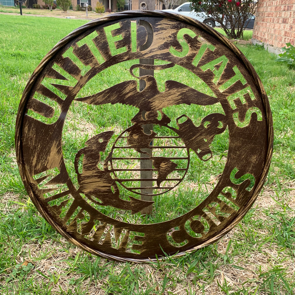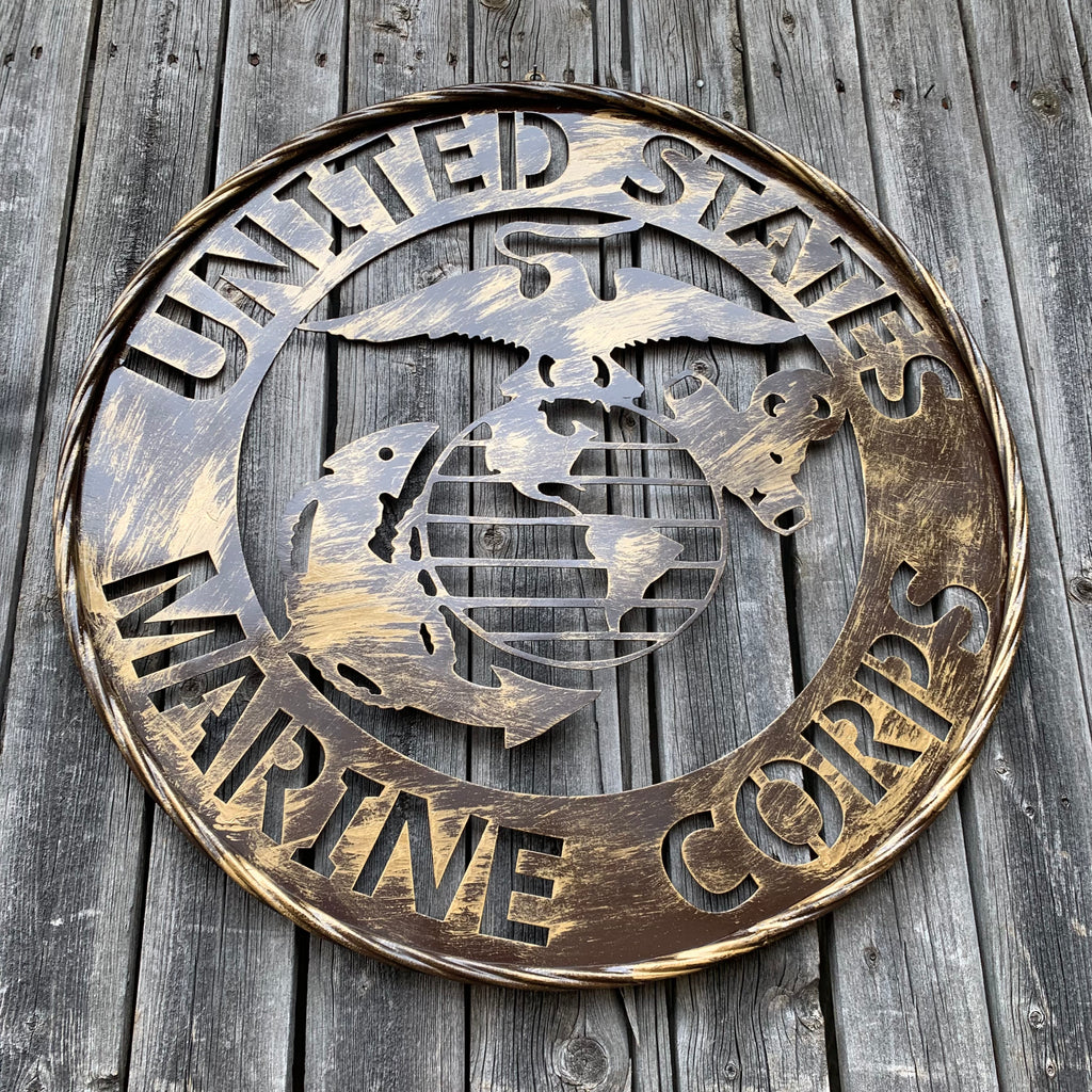 UNITED STATES MARINE CORPS CUSTOM METAL LASERCUT VINTAGE CRAFT SIGN PATRIOTIC MILITARY WALL DECOR WESTERN HOME DECOR HANDMADE RUSTIC BRONZE BRUSHED COPPER