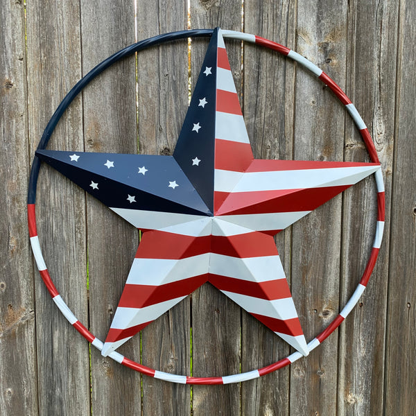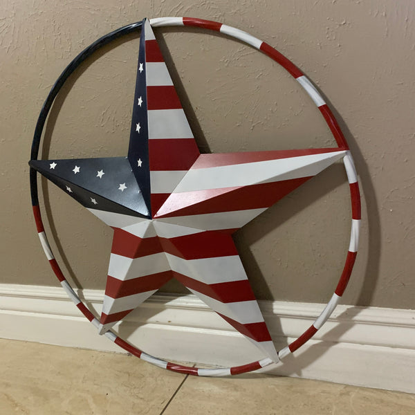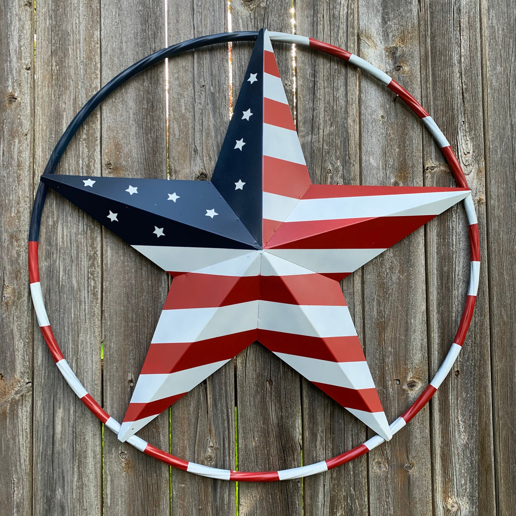 USA FLAG STAR AMERICAN FLAG STAR BARN METAL STAR RED WHITE & BLUE STAR WITH TWISTED ROPE RING WESTERN HOME DECOR HANDMADE NEW