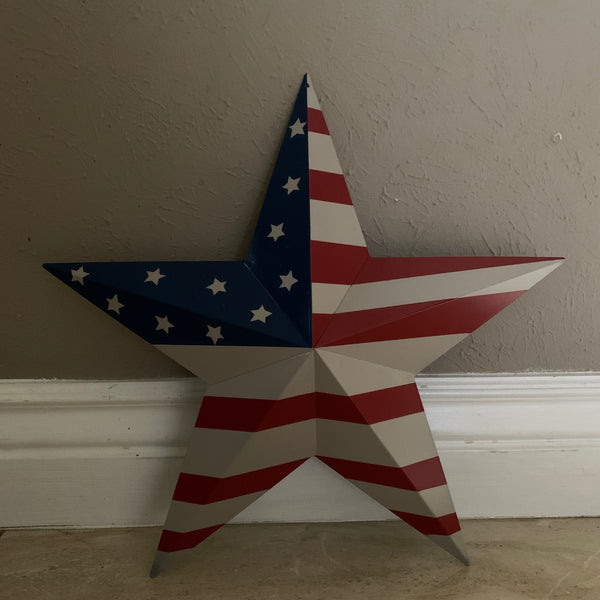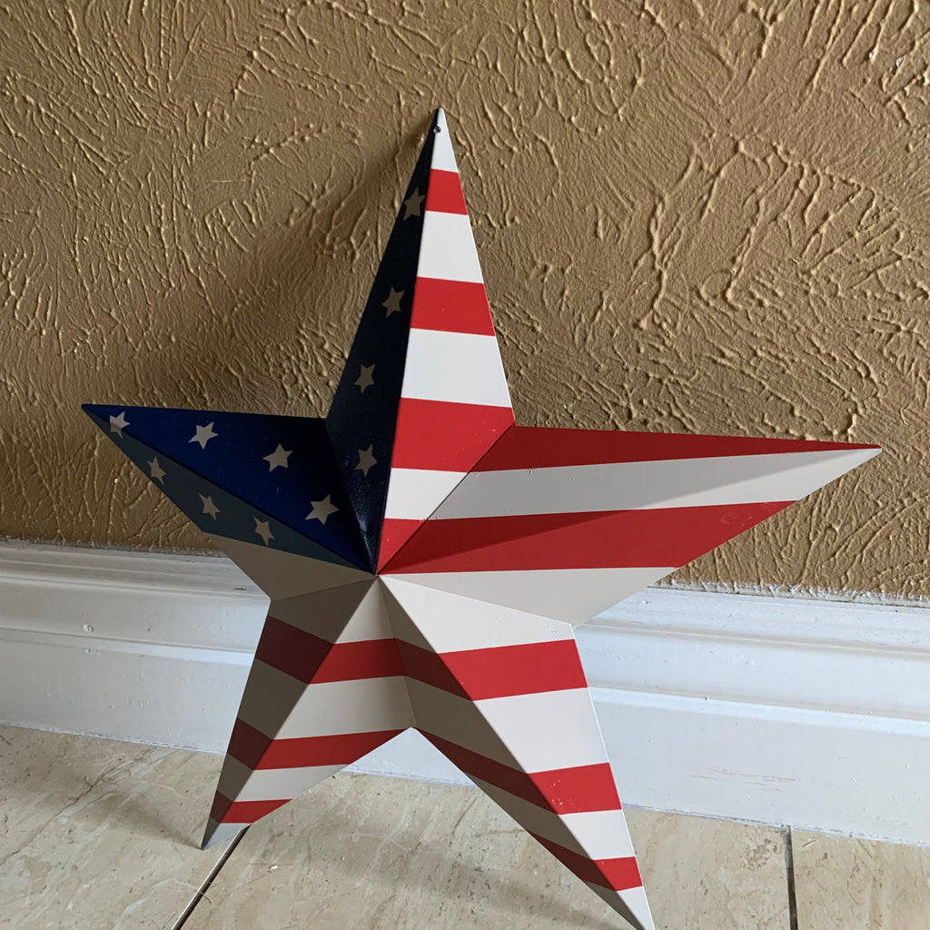 AMERICAN USA FLAG USA BARN METAL STAR WITH RED BEIGE & NAVY BLUE STAR WESTERN HOME DECOR METAL WALL ART HAMDMADE NEW