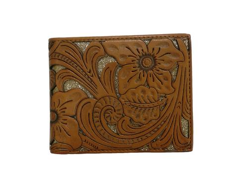 WESTERN GENUINE SILVER/TAN SHORT LEATHER WALLET
