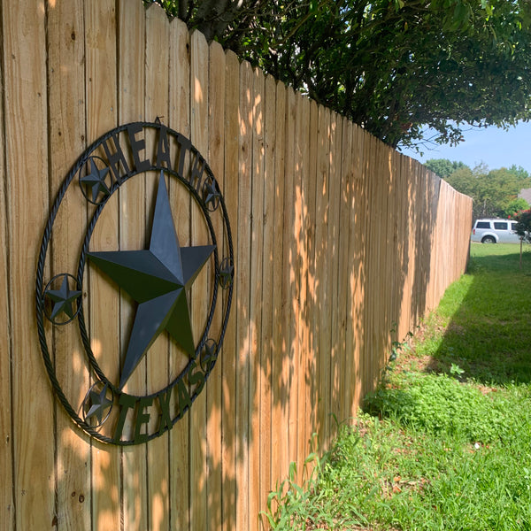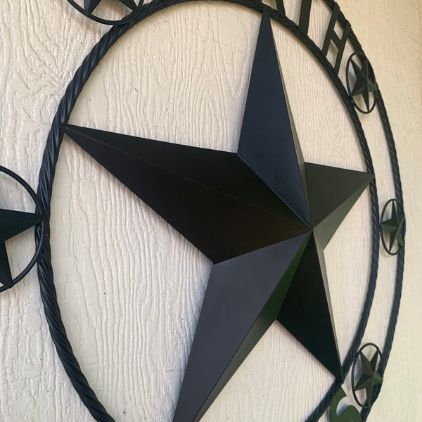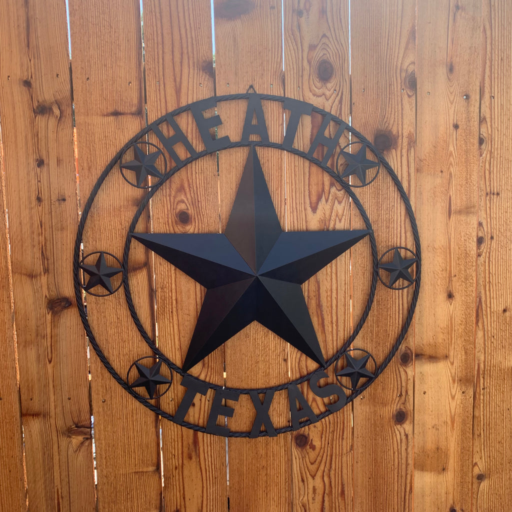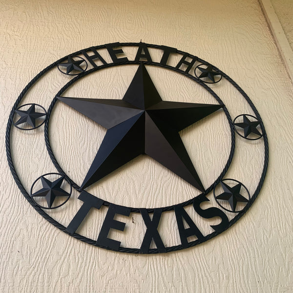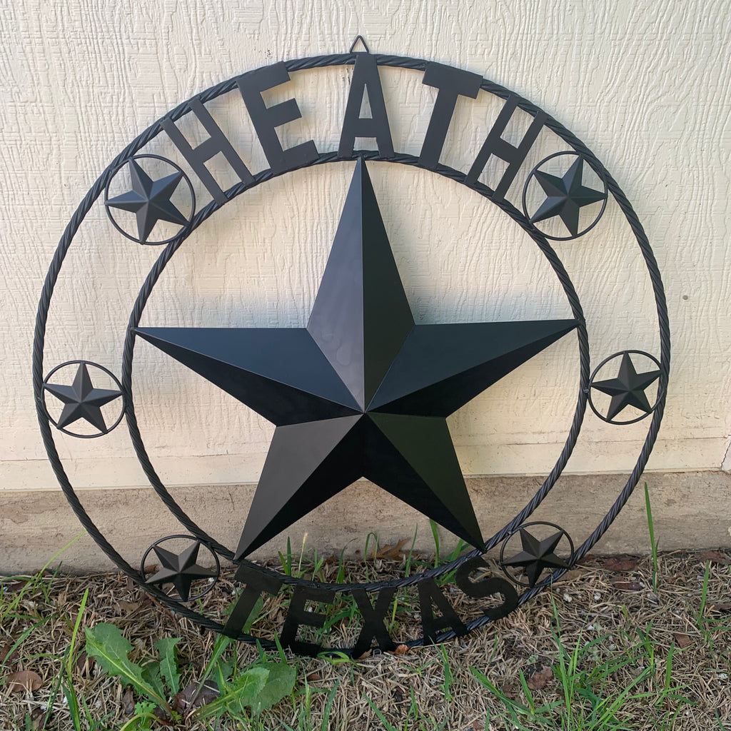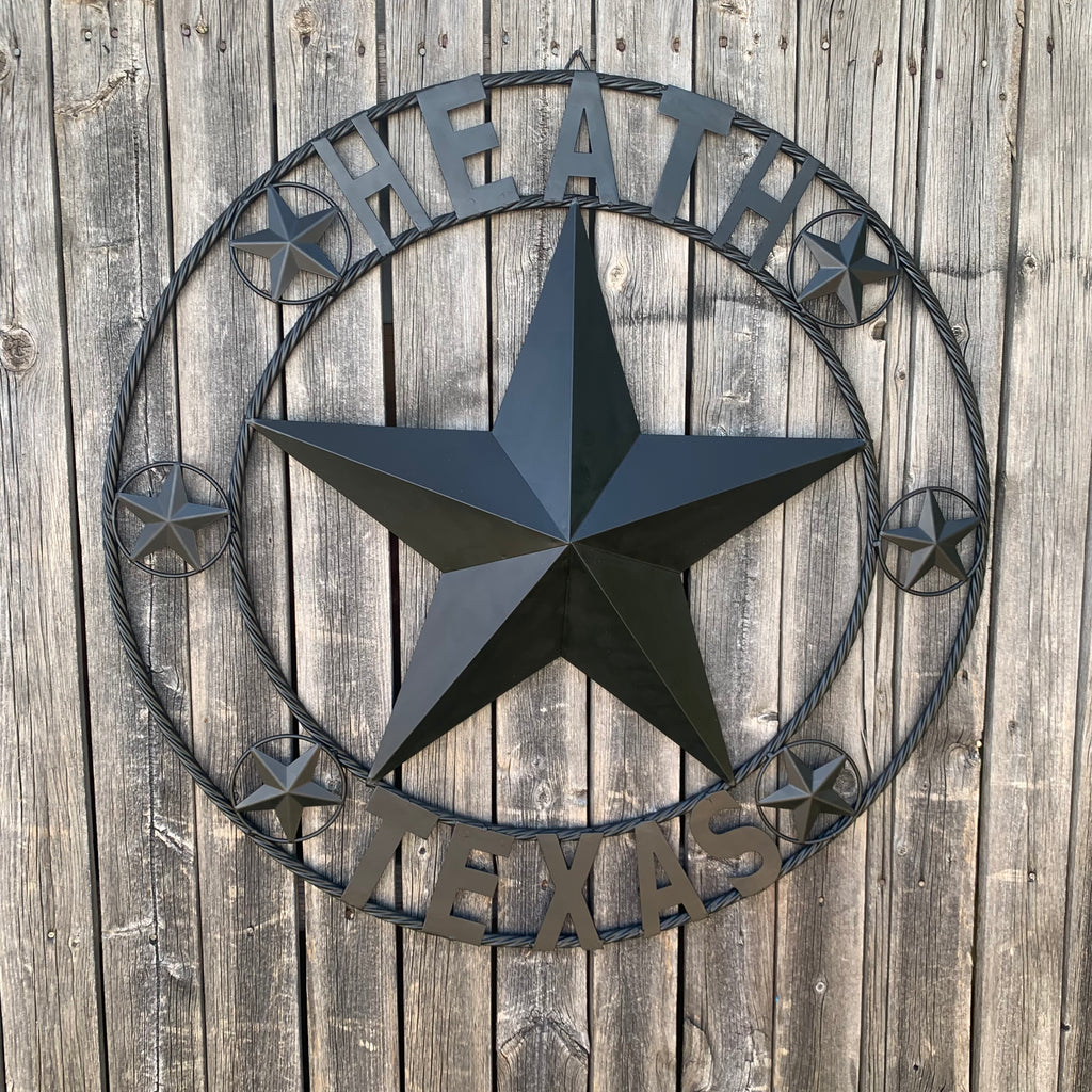 HEATH TEXAS STYLE CUSTOM STAR NAME BARN METAL STAR 3d TWISTED ROPE RING WESTERN HOME DECOR HANDMADE RUSTIC BLACK 24",32",34",36",40",42",44",46",50"