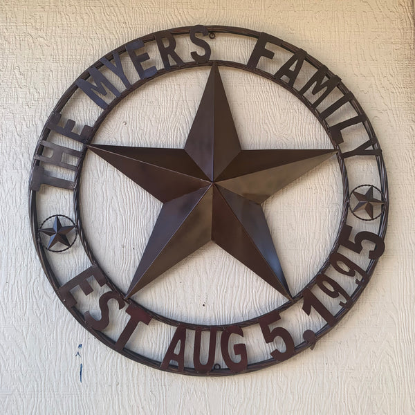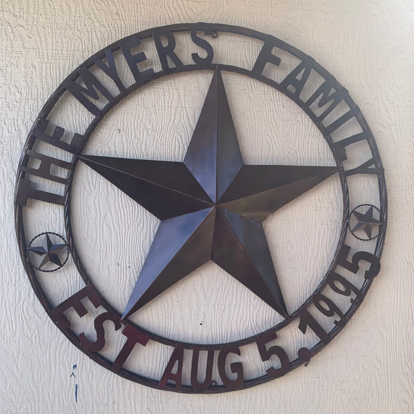 MYERS STYLE YOUR CUSTOM NAME STAR BARN STAR METAL LONE STAR WESTERN HOME DECOR RUSTIC BLACK HANDMADE 24",32",36",50"