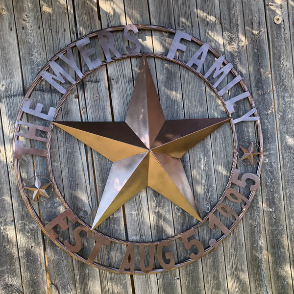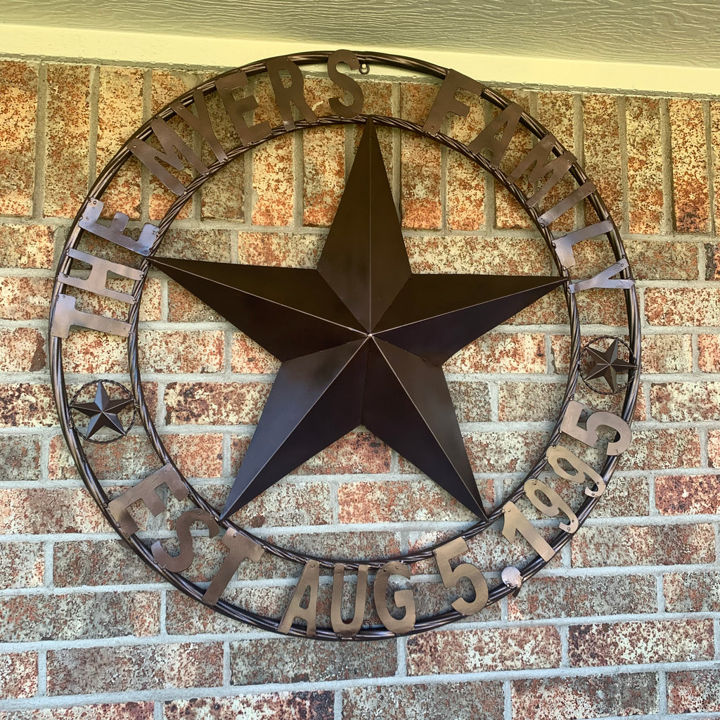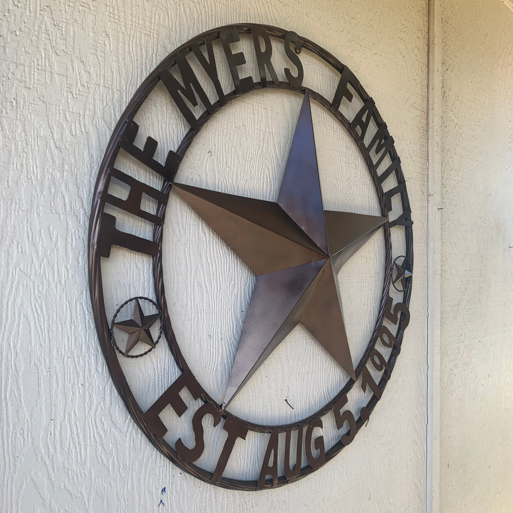 YOUR CUSTOM NAME BARN STAR METAL LONE STAR TWISTED ROPE RING WESTERN HOME DECOR RUSTIC HANDMADE BRAND NEW