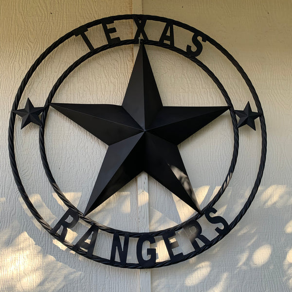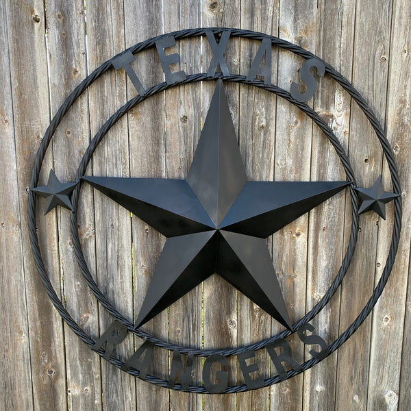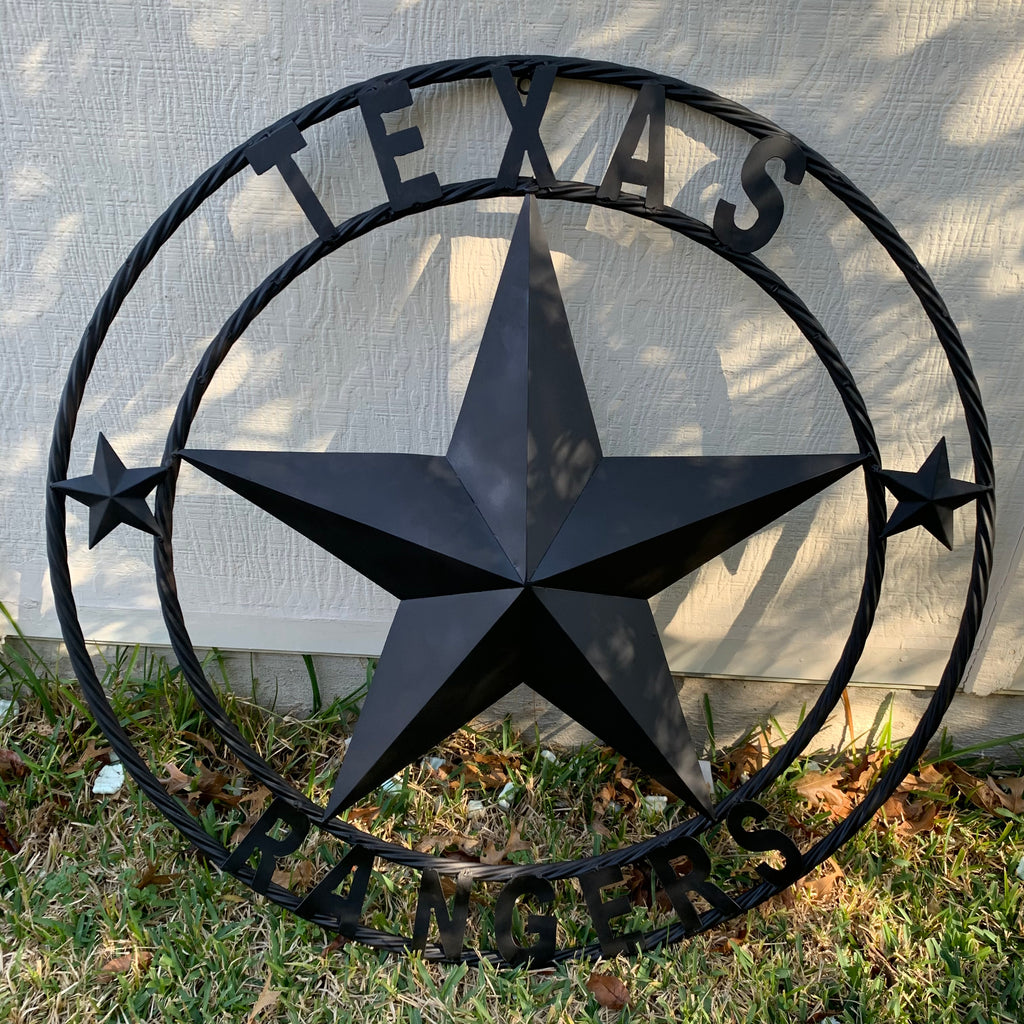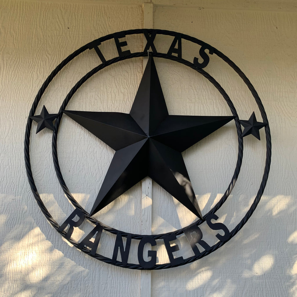 TEXAS RANGERS RUSTIC BLACK LONE STAR CUSTOM METAL ART CRAFT WESTERN HOME DECOR HANDMADE
