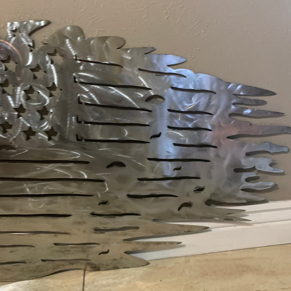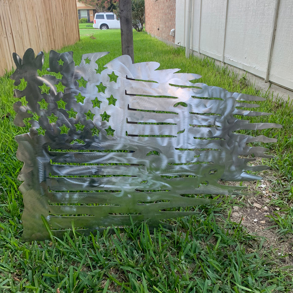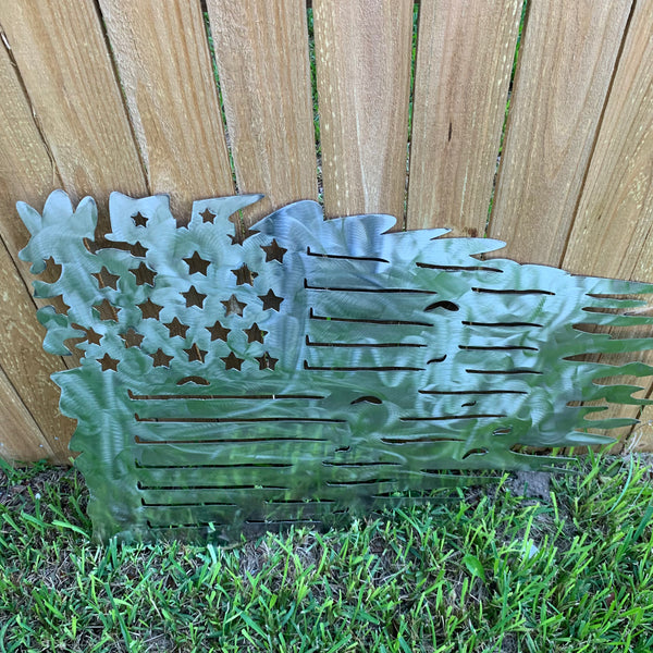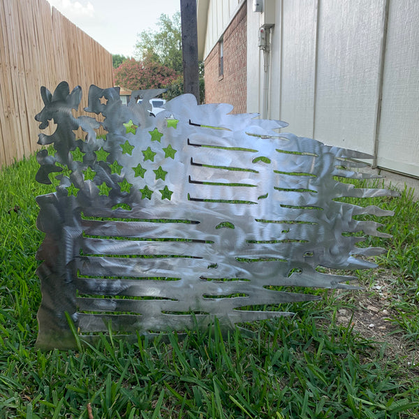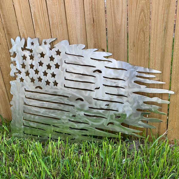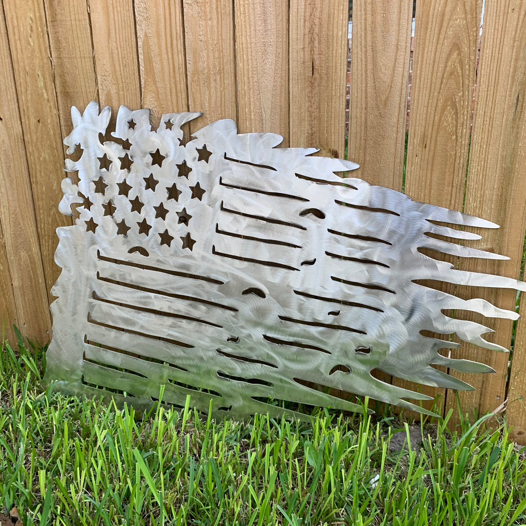 USA TATTERED FLAG CUSTOM RAW METAL UNPAINTED LASERCUT ART WESTERN HOME DECOR WALL ART BRAND NEW